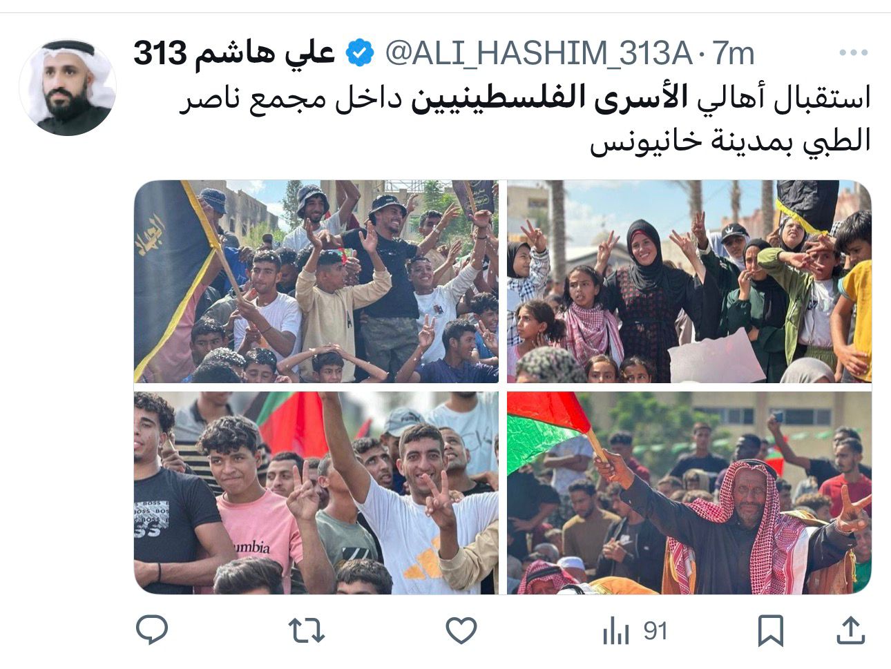 وشهد الوسم آلاف التغريدات التي عبّرت عن مشاعر الفرح، بالإضافة إلى دعوات لمواصلة الجهود في سبيل تحقيق التهدئة في غزة وحقن الدماء.