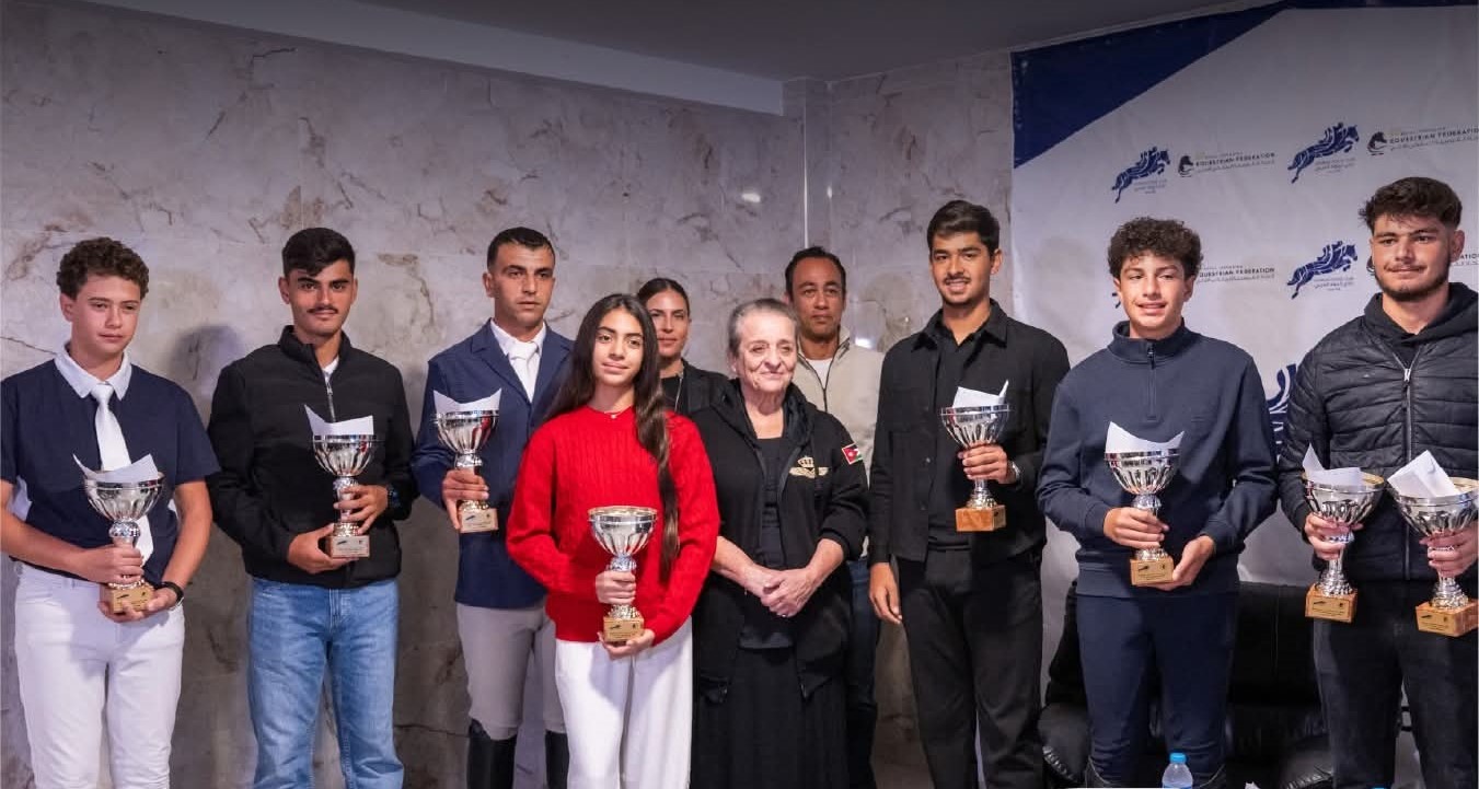 رم - توجت سمو الأميرة عالية بنت الحسين، رئيسة الاتحاد الملكي الأردني للفروسية، أبطال الدوري الأردني لفروسية القفز عن الحواجز لعام 2025 خلال حفل أقيم في نادي الجواد العربي.