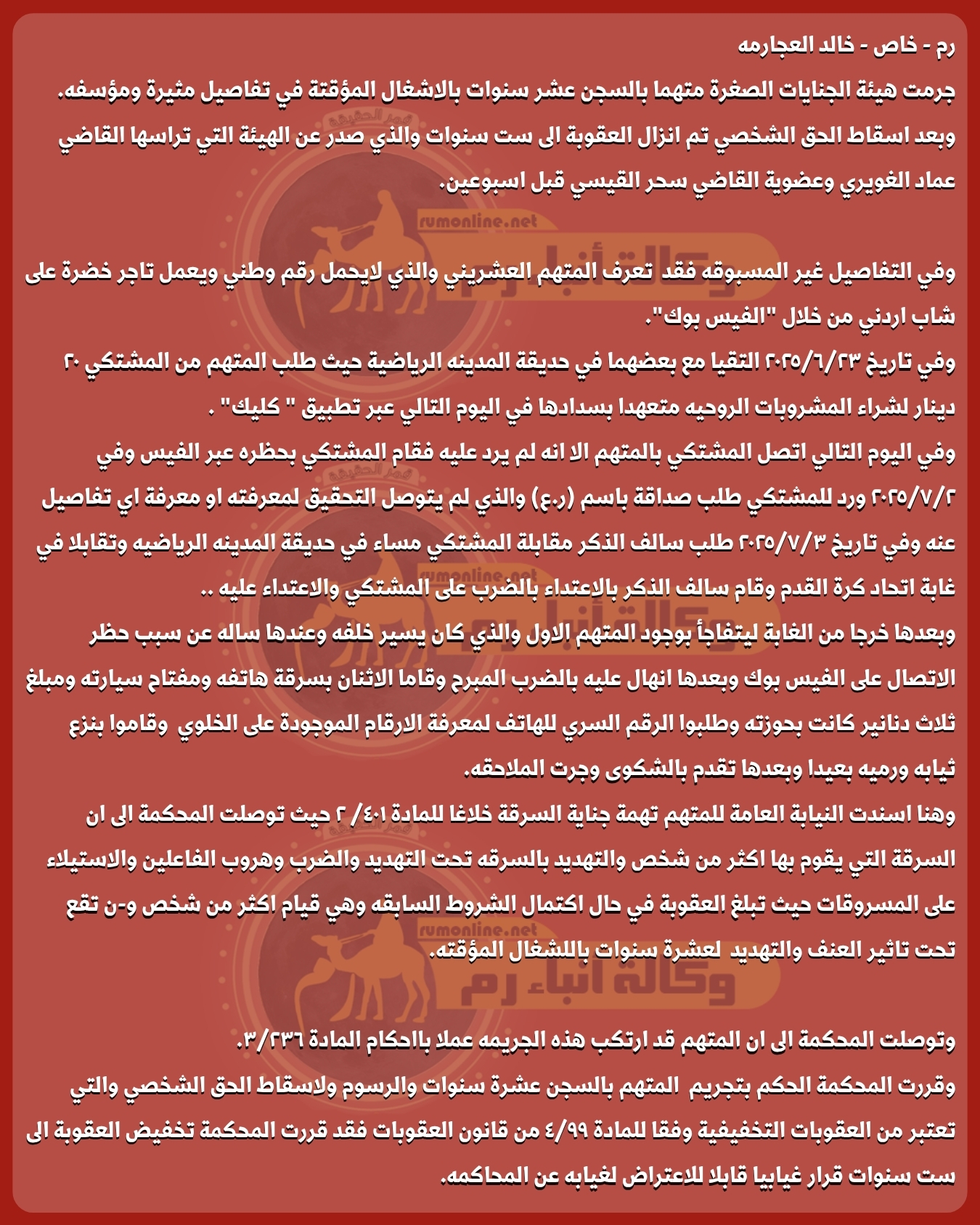 استدان منه 20 دينار لشراء و حكم عليه بالسجن 10 سنوات .. تفاصيل مذهله