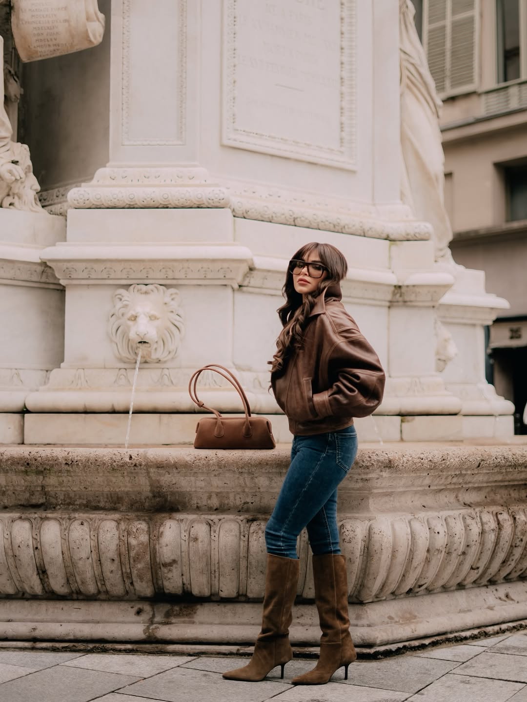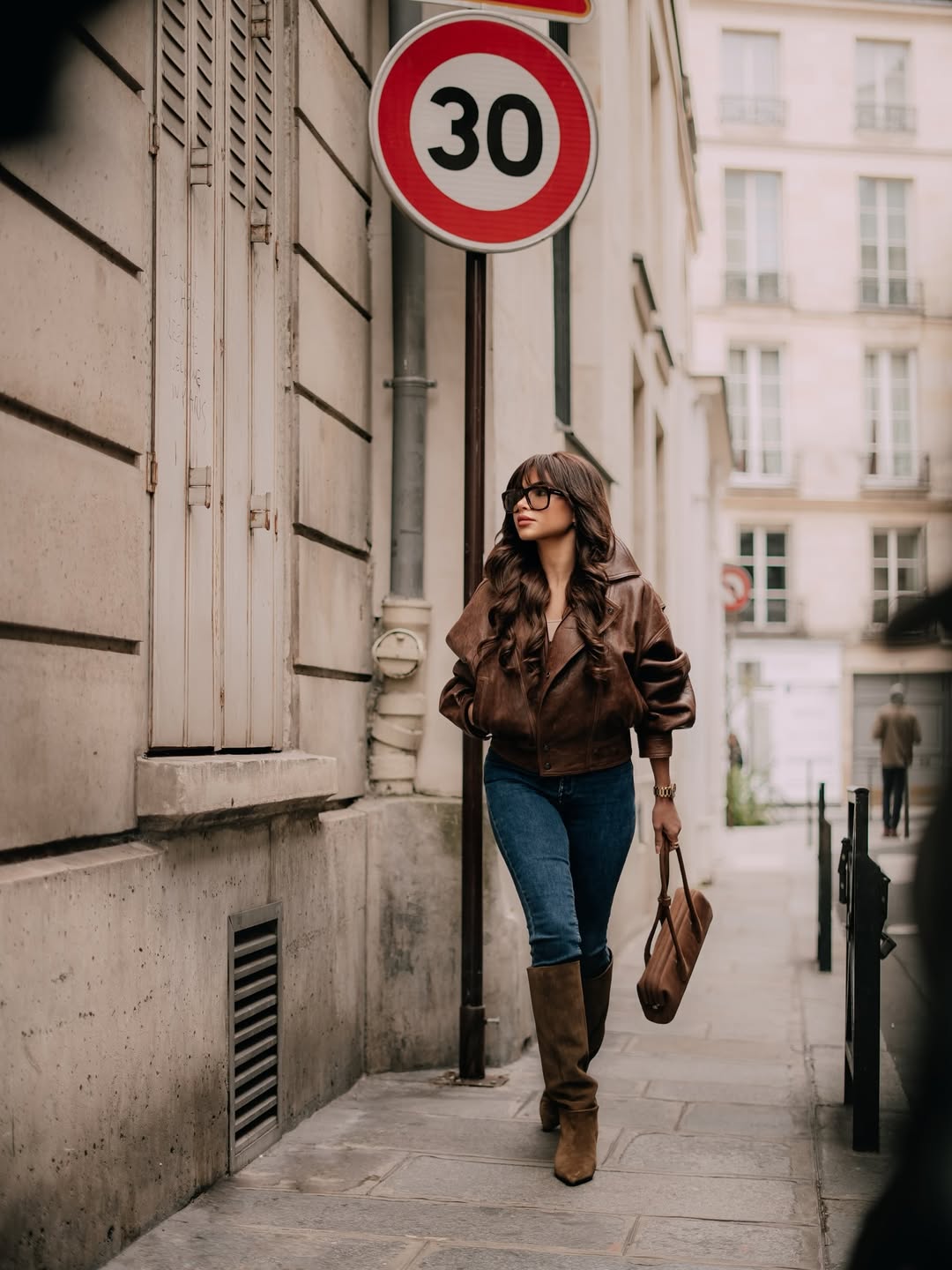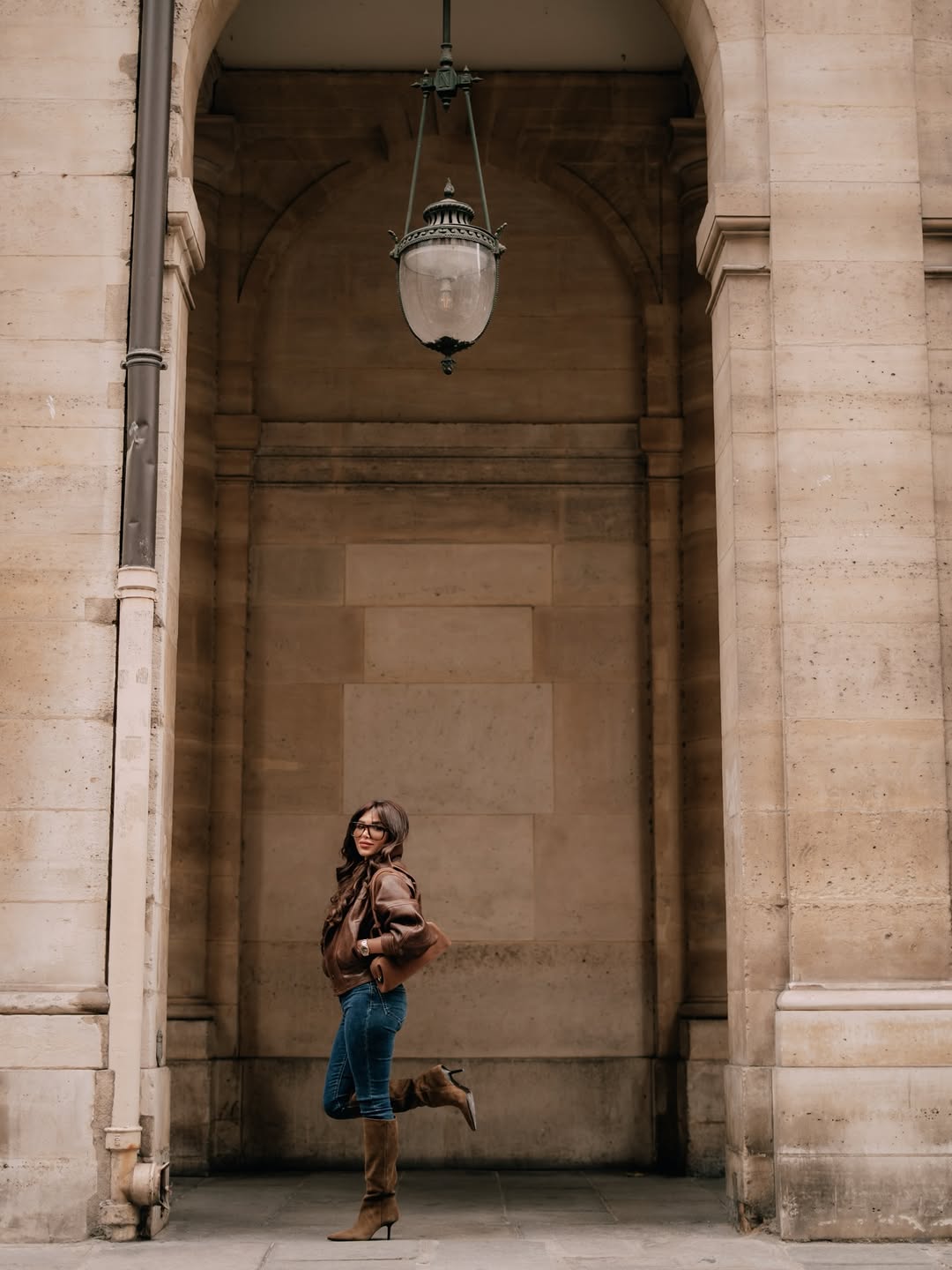 رم - اختارت البلوغر ورائدة الأعمال #نهى_نبيل مشاركة صور عبر حسابها في إنستغرام من حضورها أسبوع الموضة الباريسي حيث اعتمدت لوك سمارت كاجوال مكونًا من بنطلون جينز كحلي نسّقت معه جاكيت الـ Biker من الجلد باللون البني من علامة إيف سان لوران وحذاء بساق عالية باللون نفسه وحقيبة يد مميزة باللون العسلي..