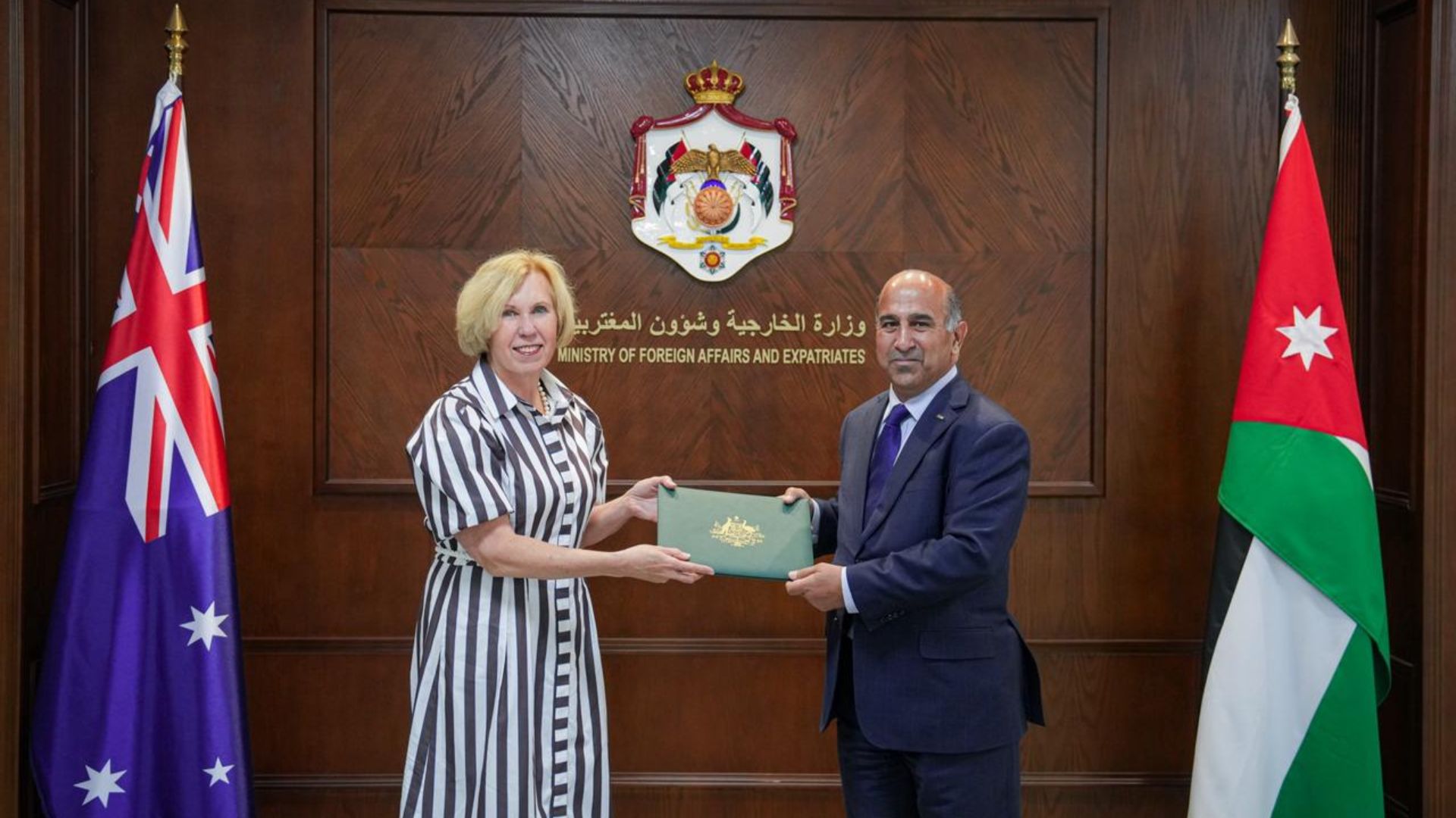 رم - تسلّم أمين عام وزارة الخارجية وشؤون المغتربين السفير ضيف الله الفايز، اليوم الخميس، نسخة من أوراق اعتماد سفيرة أستراليا الصديقة، باولا إليزابيث غانلي، سفيرًا معتمدًا ومقيمًا لدى المملكة.