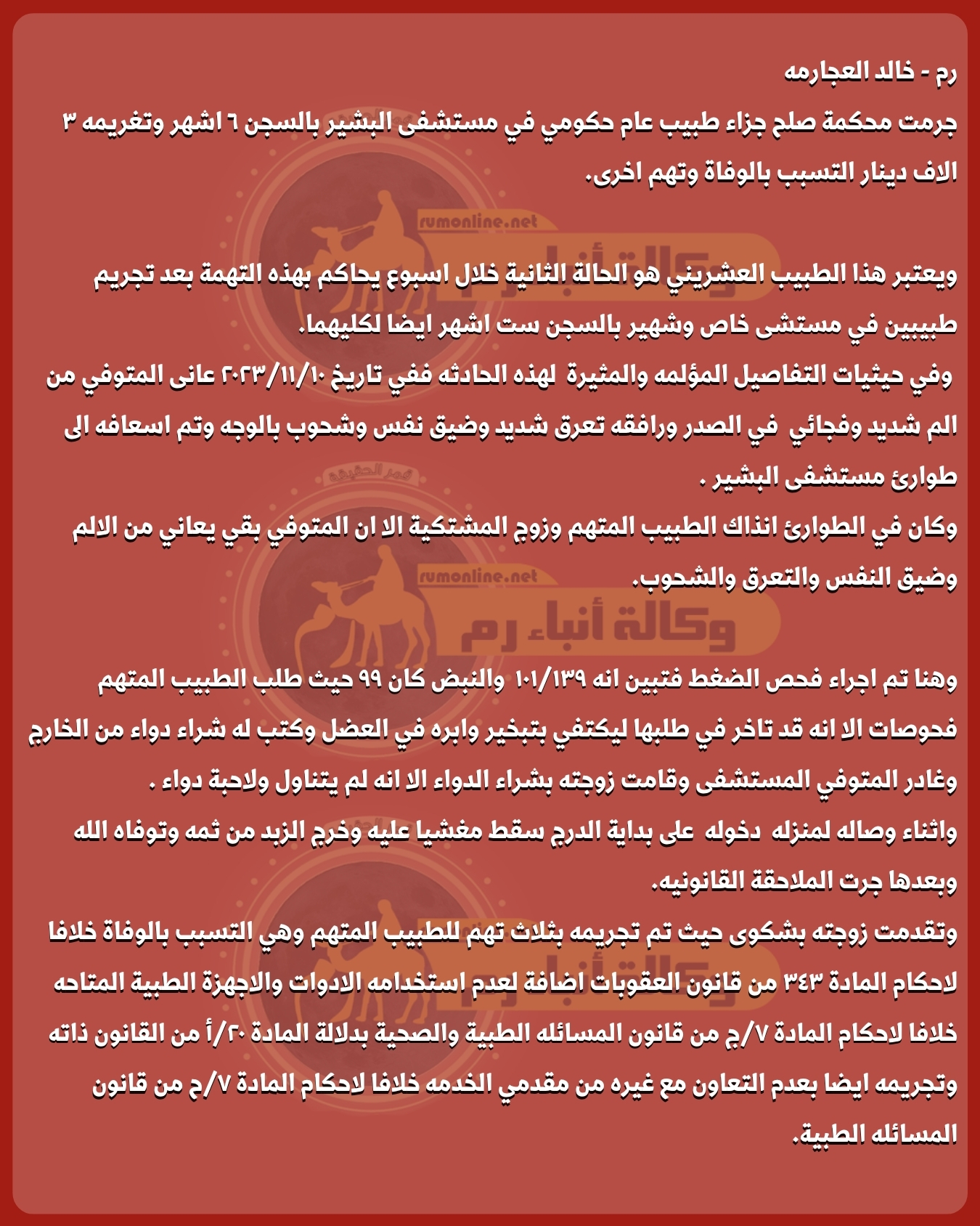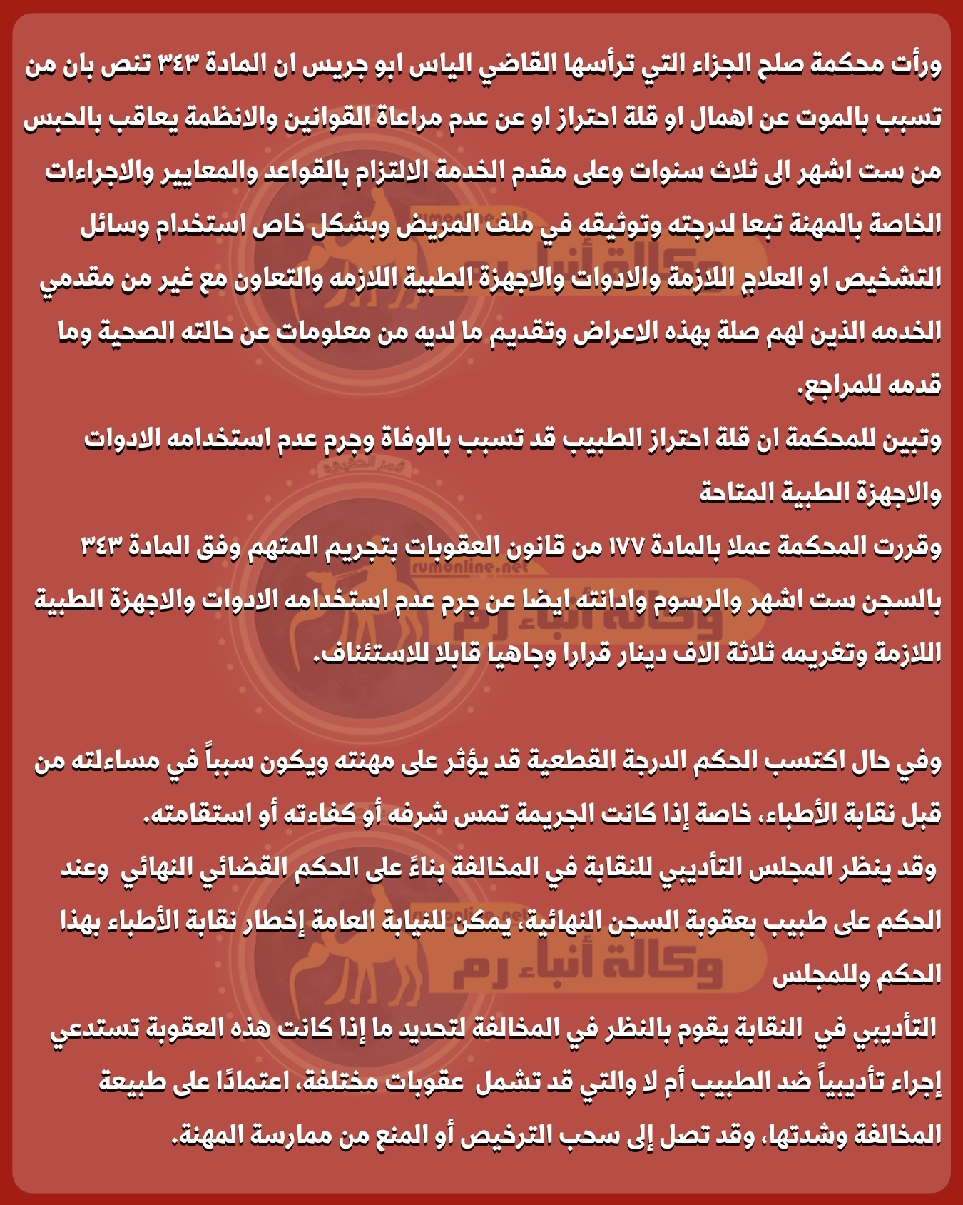 في تفاصيل محزنة .. وللمرة الثانية خلال أسبوع .. لماذا حكم على طبيب ب" البشير" بالسجن والغرامة ؟