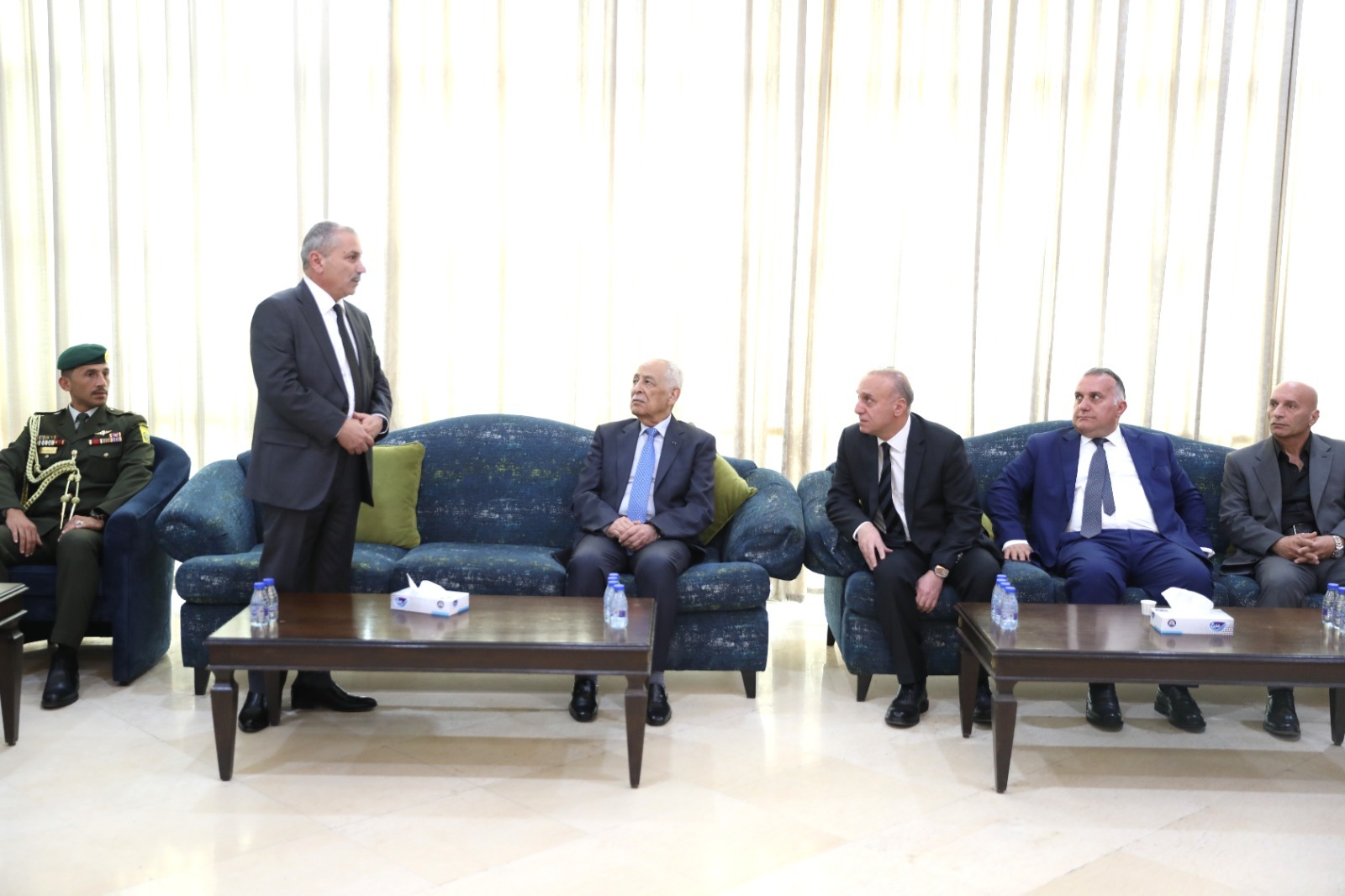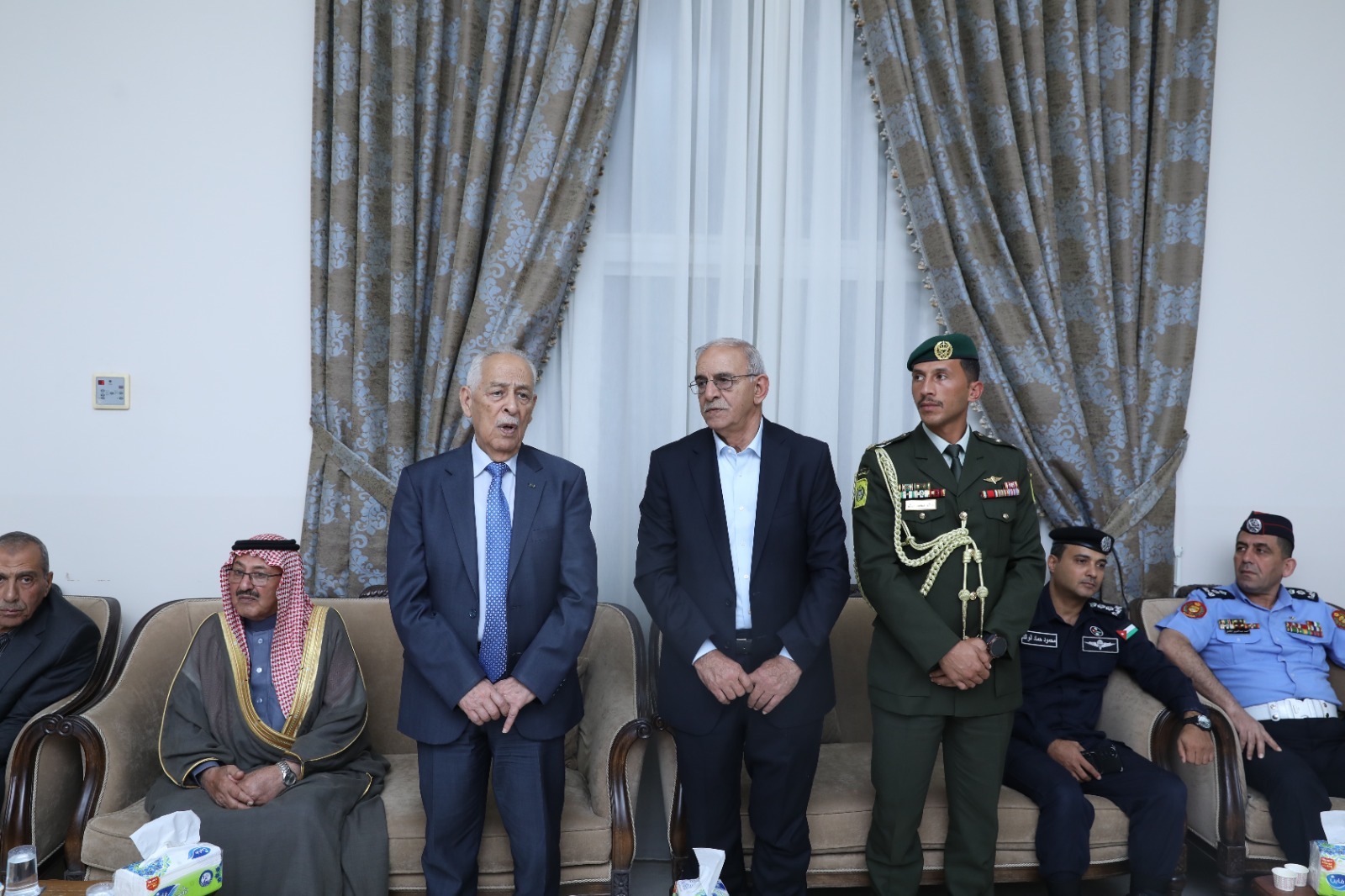 رم - عمان-سحاب – السلط- 31 تشرين الأول 2025- مندوبا عن جلالة الملك عبدالله الثاني وسمو الأمير الحسين بن عبدالله الثاني، ولي العهد، قدم رئيس الديوان الملكي الهاشمي يوسف حسن العيسوي، اليوم الجمعة، واجب العزاء إلى عشائر غنما الحباشنة وعشيرة المحارمة، وأبو رمان والريالات وأبو سليم.