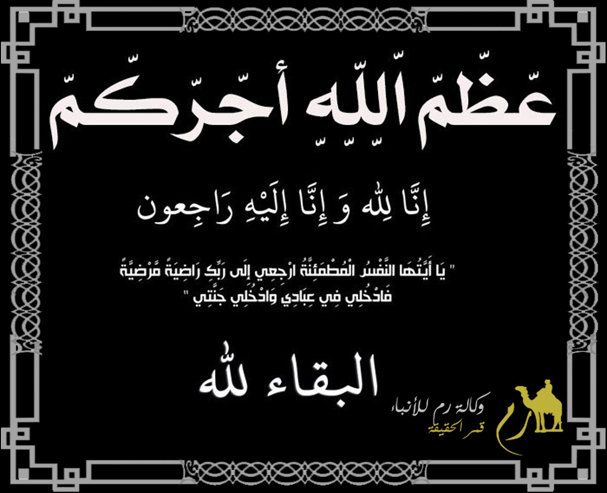تقبل التعازي في مضافة عشيرة الرحاحله بعد العصر ولمدة يومين من يوم الدفن .