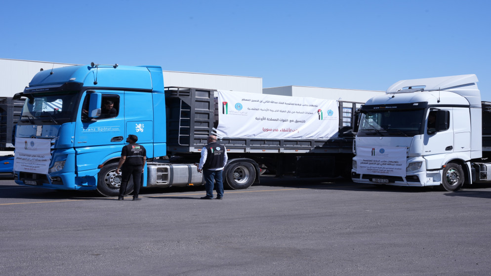 رم - سيّرت الهيئة الخيرية الأردنية الهاشمية، بالتنسيق مع وزارة الخارجية وشؤون المغتربين والقوات المسلحة الأردنية – الجيش العربي، الأحد، قافلة مساعدات جديدة باتجاه أراضي الجمهورية العربية السورية، تضم 16 شاحنة محمّلة بالبيوت الجاهزة والمواد الطبية والأدوية، وذلك استمرارًا لجهود المملكة في دعم الأشقاء السوريين وإسنادهم.