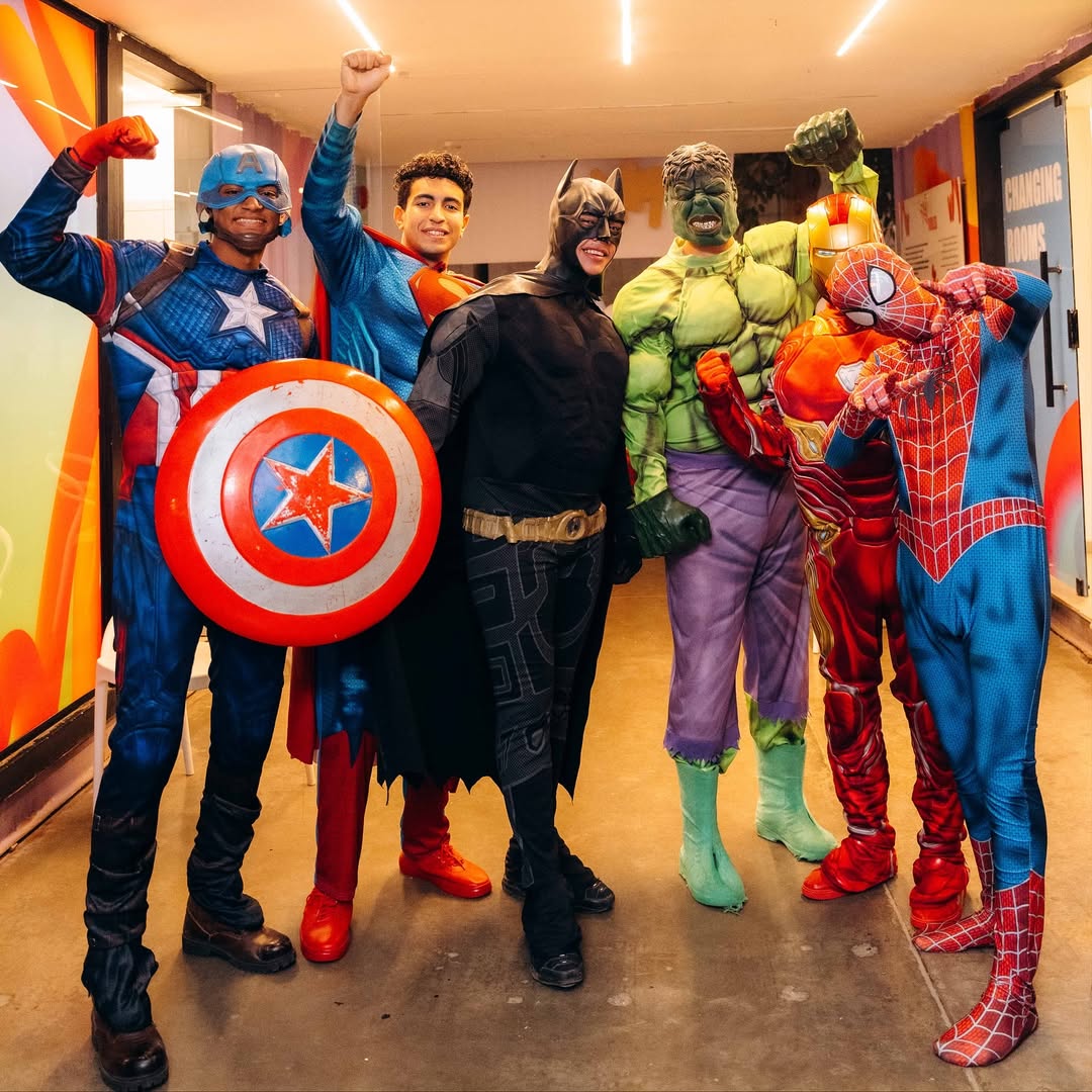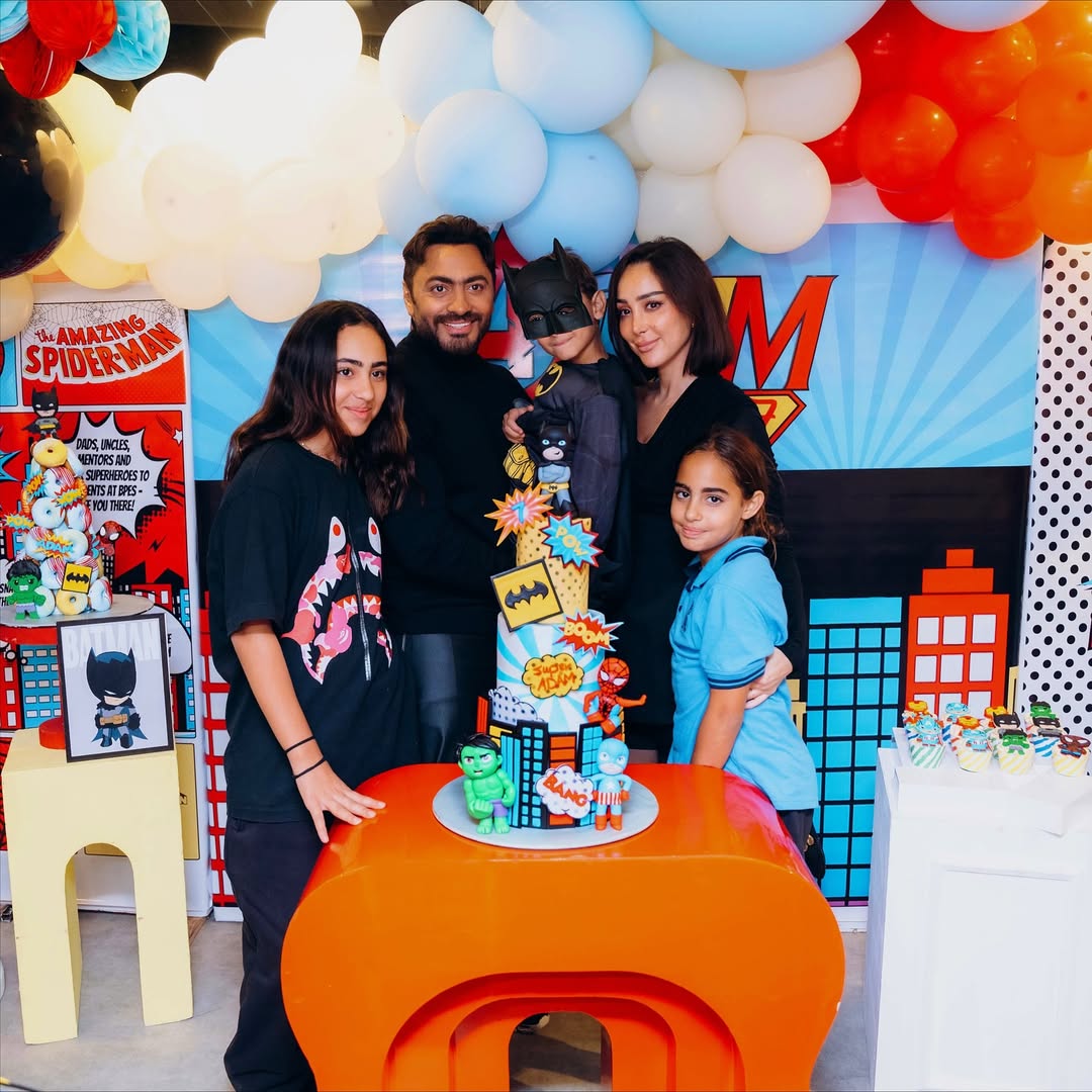 وجاءت أجواء الحفل مستوحاة من عالم الأبطال الخارقين من عالمي DC وMarvel، حيث شارك “سوبرمان” و“سبايدرمان” و“كابتن أميركا” و“آيرون مان” و“هالك” في أجواء الاحتفال المرحة بعيد ميلاد آدم.