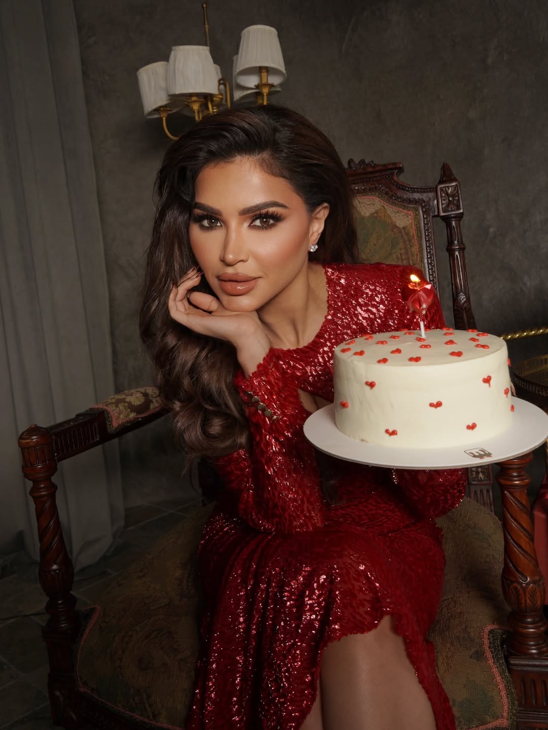 نهى نبيل بفستان أحمر لامع بمناسبة عيد ميلادها