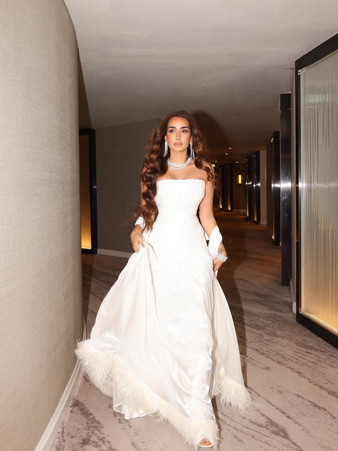 رم - شاركت النجمة المصرية #هنا_الزاهد صورًا عبر حسابها في "إنستغرام" من احتفالية خاصة بالعلامة التجارية الفرنسية apmmonaco، معلنةً اختيارها كأول سفيرة عربية لعلامة المجوهرات هذه. هنا اختارت لهذه المناسبة فستان سترابليس باللون الأبيض مزينًا بالريش من الأسفل واعتمدت تسريحة شعر منسدلة بتموجات بسيطة بينما لجأت للمكياج اللامع بتدرجات ألوان النيود