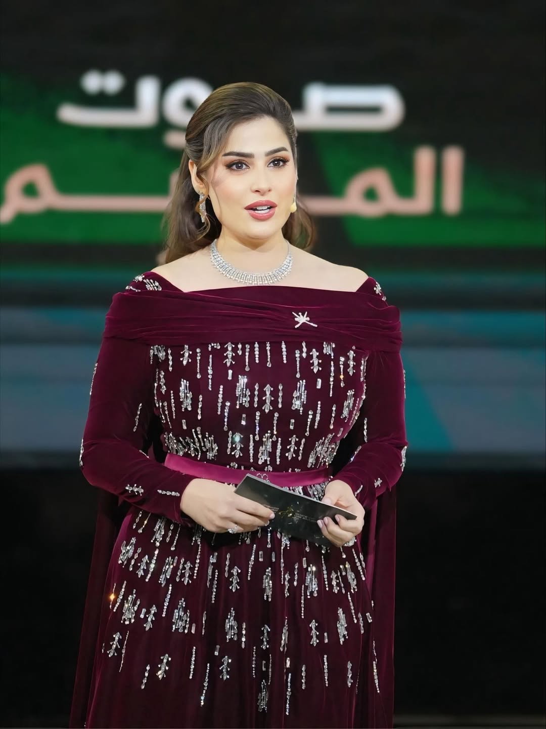 بفستان مخملي خلاب، اختارت الإعلامية #رؤى_الصبان الظهور في الحلقة السادسة من برنامج صوت الموسم، وتألقت رؤى بفستان مخملي باللون الأحمر الداكن، ورُصع الفستان بأحجار بارزة باللون الفضي، وأكملت إطلالتها بعقد وأقراط براقة.. هل أعجبك اختيارها؟