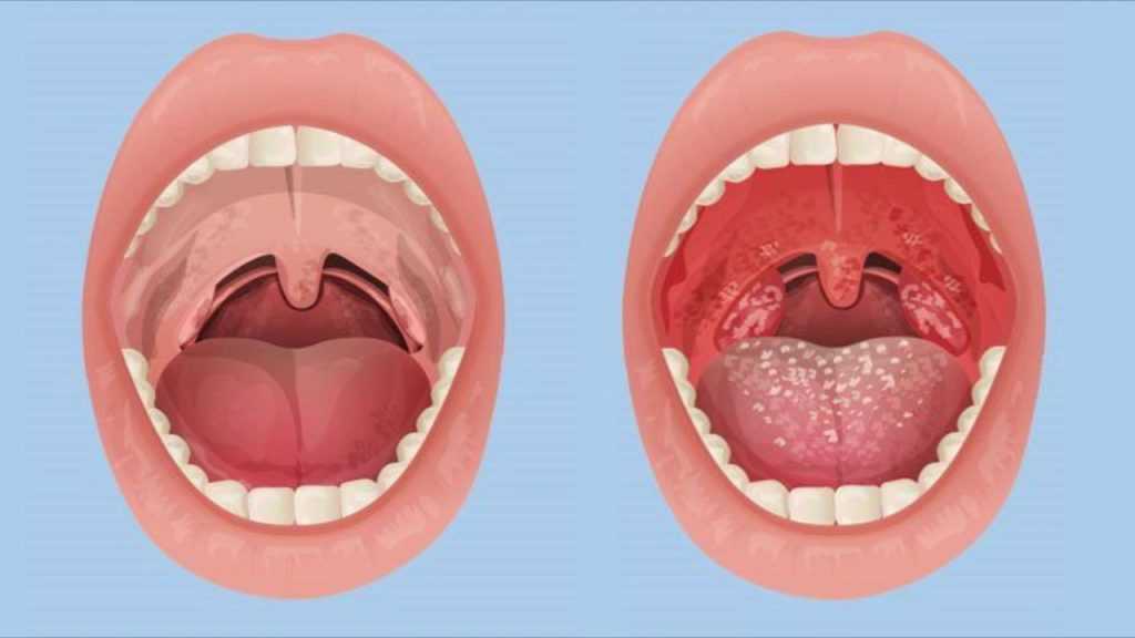 - تضخم اللوزتين أو ظهور إفرازات عليهما