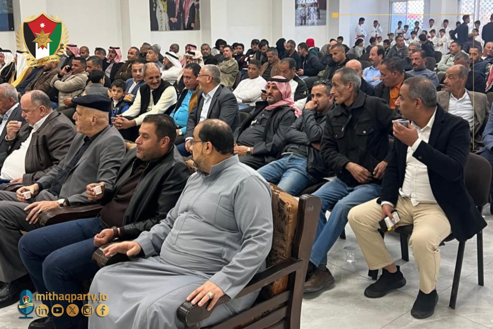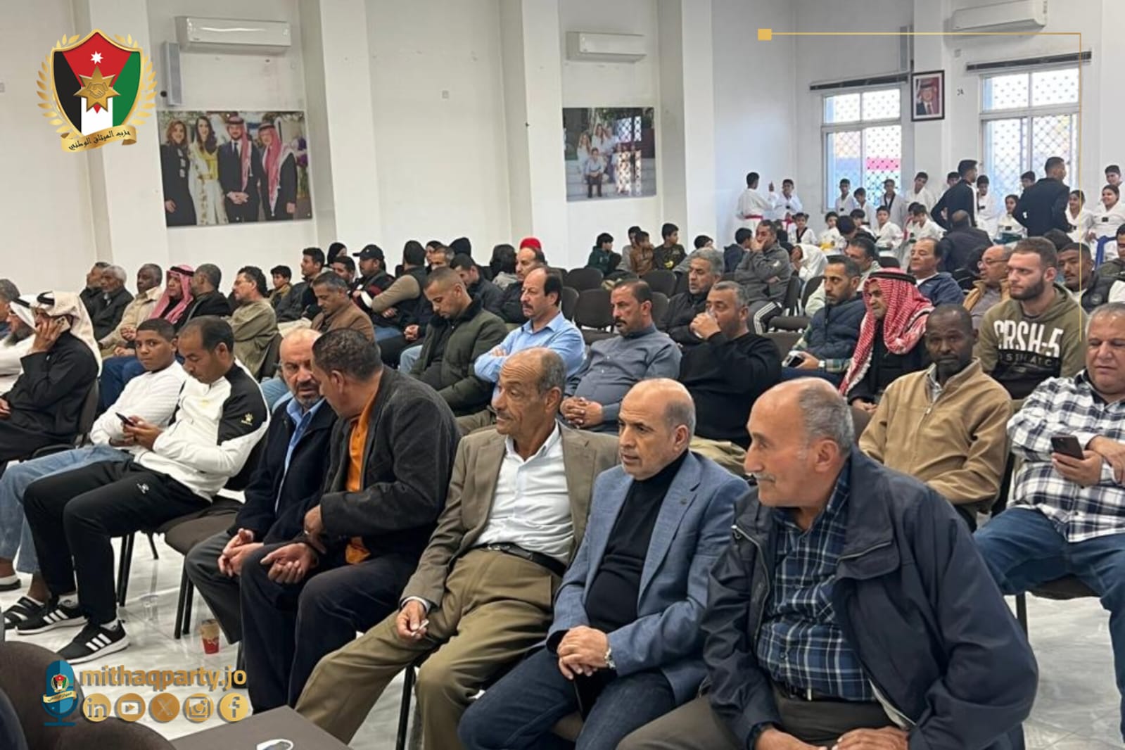 رم - ضمن فعاليات لجنة فلسطين في حزب الميثاق الوطني أقامت أسرة نادي الطالبية والفعاليات الشعبية في لواء الجيزة ومخيم الطالبية، حفلًا لتكريم لاعبي التايكوندو المتميزين من أبناء المنطقة برعاية الامين العام بالوكالة وحضور لجنة فلسطين في الحزب واعضاء من المكتب السياسي والمجلس المركزي ، وذلك تقديرًا لإنجازاتهم الرياضية ودورهم في رفع اسم الأردن في المحافل المحلية والخارجية.