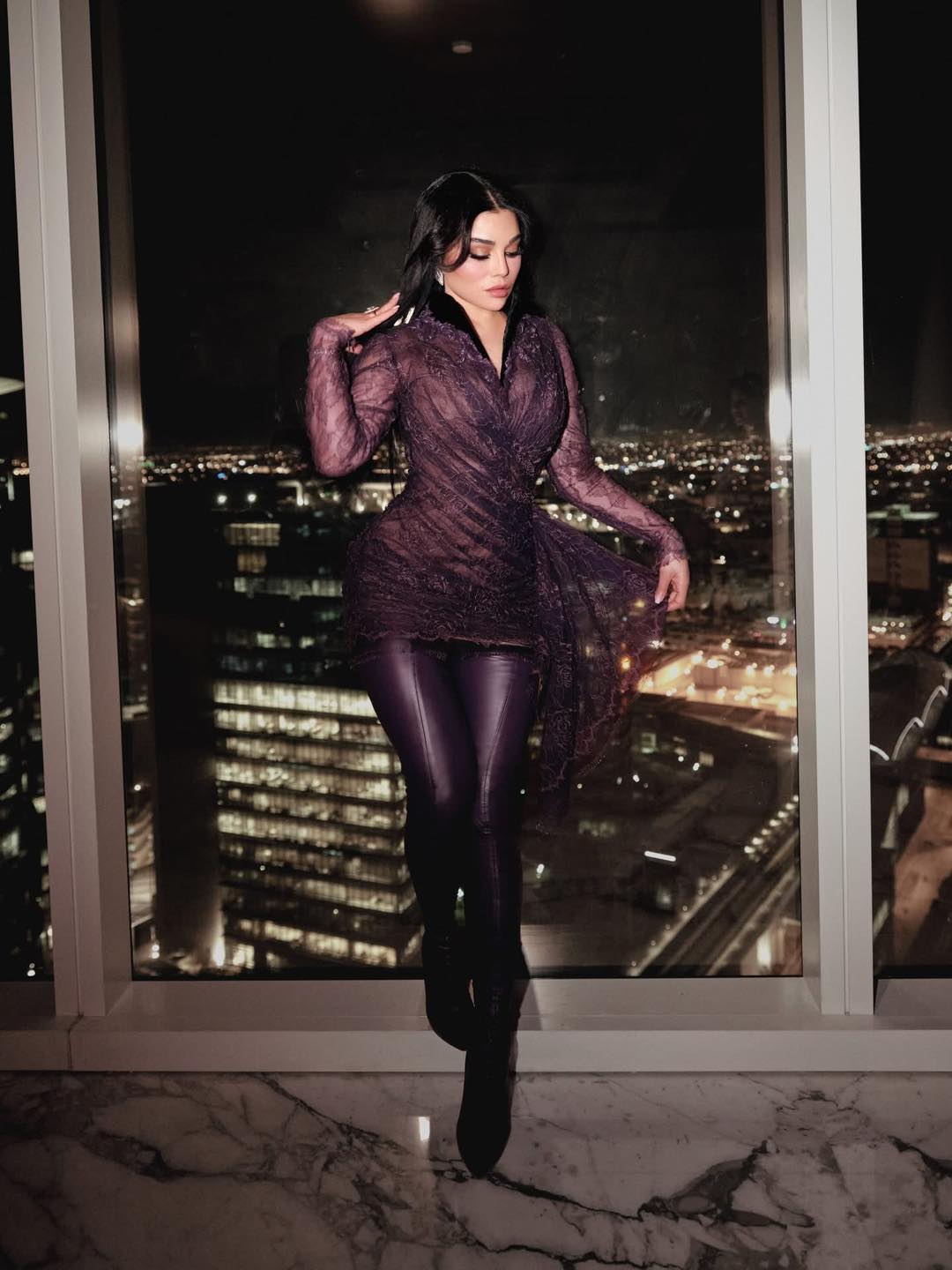 رم - ظهرت #هيفاء_وهبي بإطلالة لافتة حملت توقيع المصمم نيكولا جبران، فقد ارتدت فستانًا من الدانتيل البنفسجي، ونسقت معه حذاء جلديًا عاليًا باللون نفسه، مضيفة لمسة جريئة وعصرية إلى اللوك. الإطلالة جاءت في حفلها في الرياض، وقد نشرت هيفاء الصور عبر إنستغرام وعلّقت عليها "الجمهور السعودي بحبكم كتير".