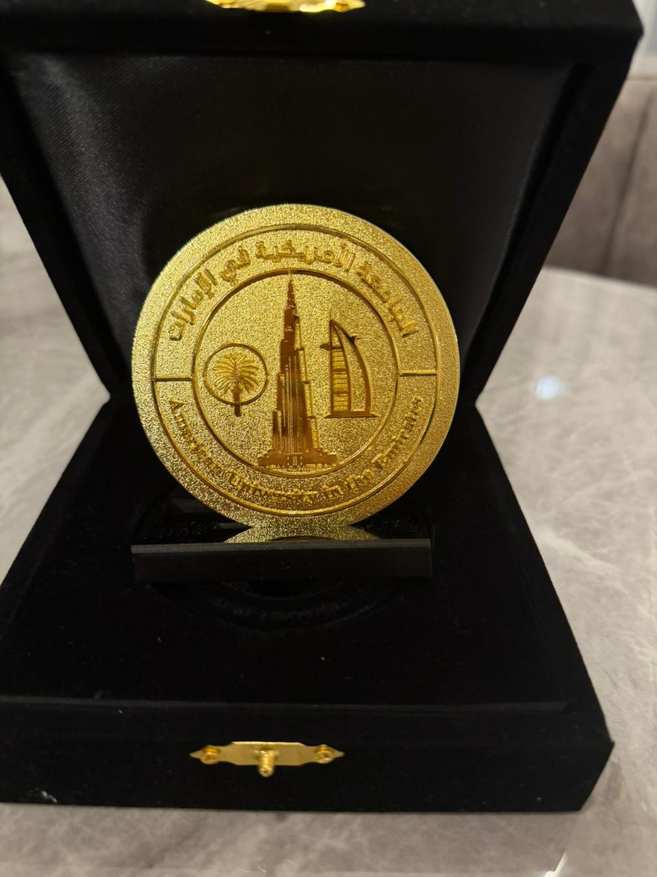 رم - والجامعة الأمريكية في الإمارات تكرّمه بعد إلقائه محاضرة بعنوان