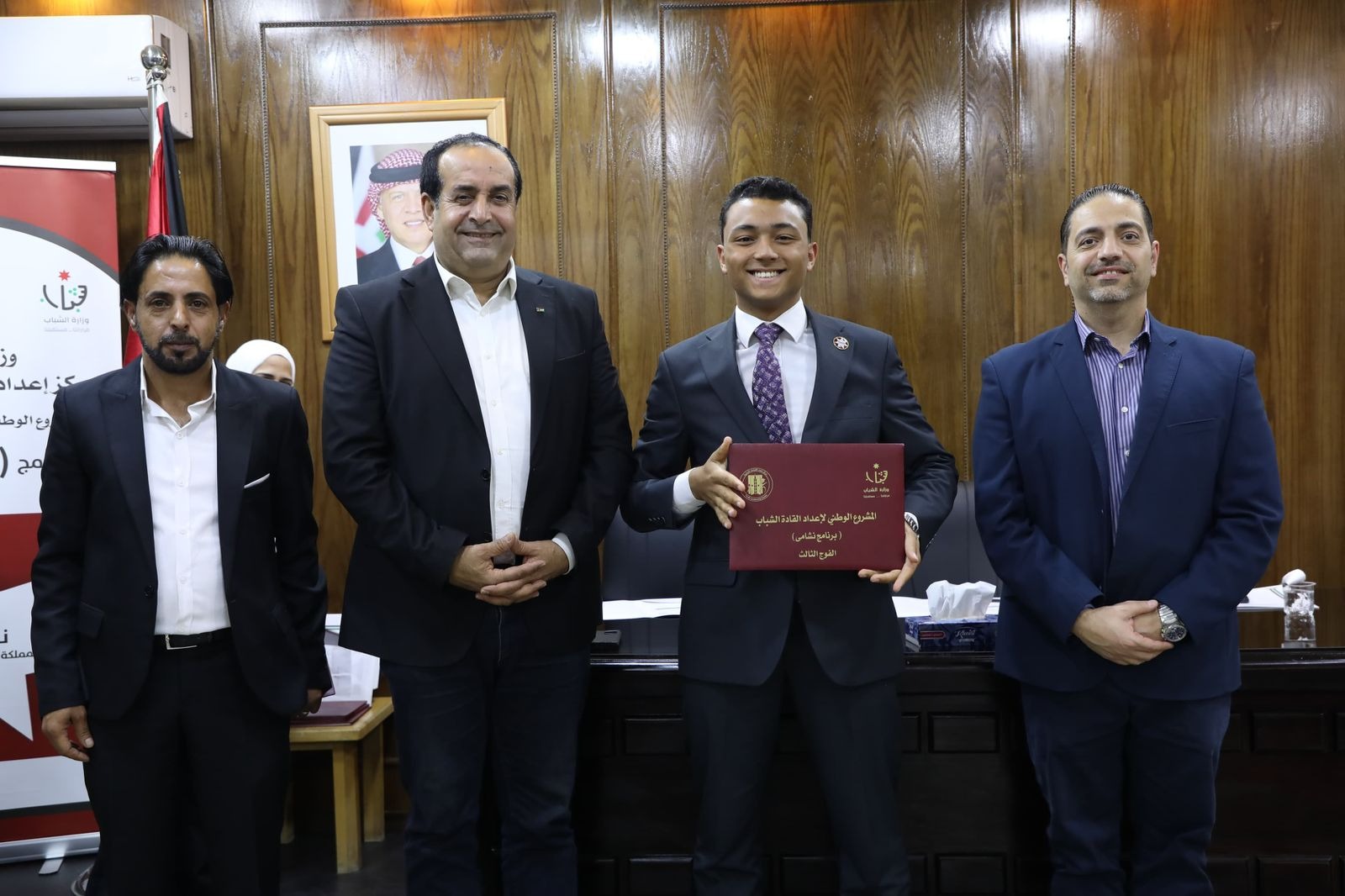 رم - أقام مركز إعداد القيادات الشبابية امس الخميس، في بيت شباب عمان بوزارة الشباب، حفل تخريج الفوج الثالث من برنامج “نشامى”، الذي نفذه المركز بمشاركة 27 شابًا وشابة من مختلف المحافظات، يمثلون نخبة من أصحاب المبادرات المجتمعية من طلبة وخريجي الجامعات، والهيئات الشبابية، والأحزاب، ومنتسبي المراكز الشبابية، بحضور مساعد الأمين العام للشؤون الإدارية والمالية في وزارة الشباب سيف عجاج، ومدير عام هيئة شباب كلنا الأردن عبد الرحيم الزواهرة.