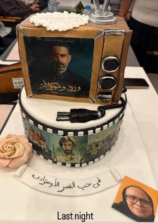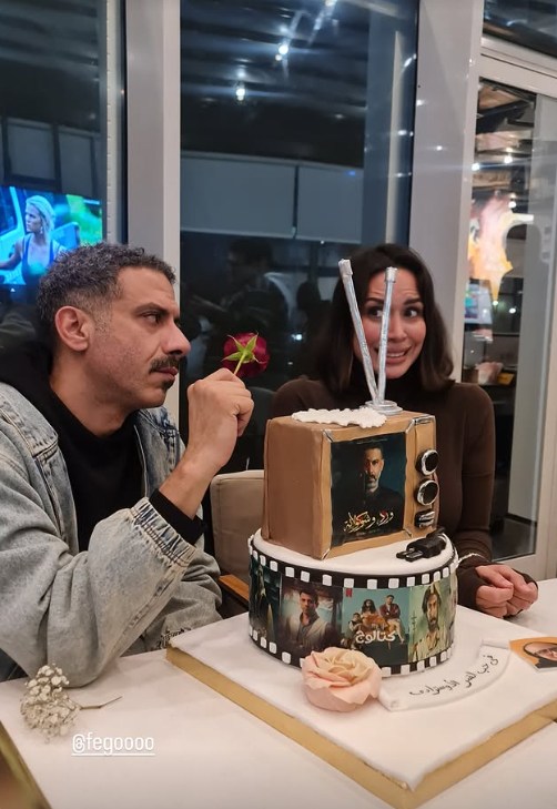 رم - احتفلت النجمة #بسنت_شوقي بزوجها #محمد_فراج، بمناسبة نجاح مسلسله الأخير "ورد وشوكولاتة" وذلك من خلال كعكة تحمل بوستر المسلسل ومكتوب عليها "في حب القمر الأوسترادي"، وذلك عبر مجموعة صور نشرتها على ستوري بإنستغرام.
