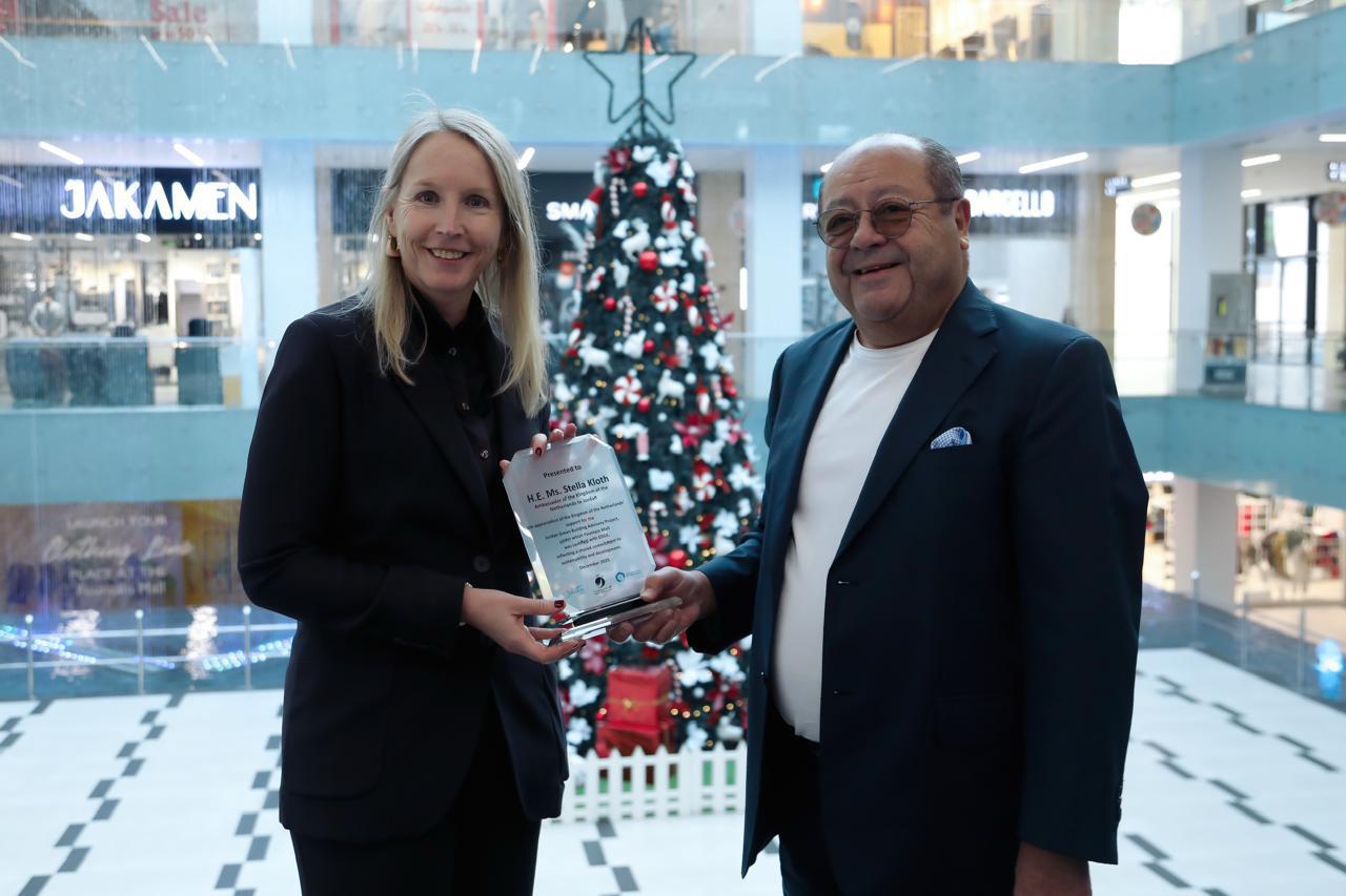 واطلعت السفيرة خلال جولتها على نظم ترشيد استهلاك الطاقة والمياه، ومعايير التصميم الأخضر التي أسهمت في رفع كفاءة التشغيل وتعزيز الممارسات البيئية داخل المول، مما يجعله نموذجاً ناجحاً لتطبيق معاير الأبنية الخضراء في القطاع التجاري.