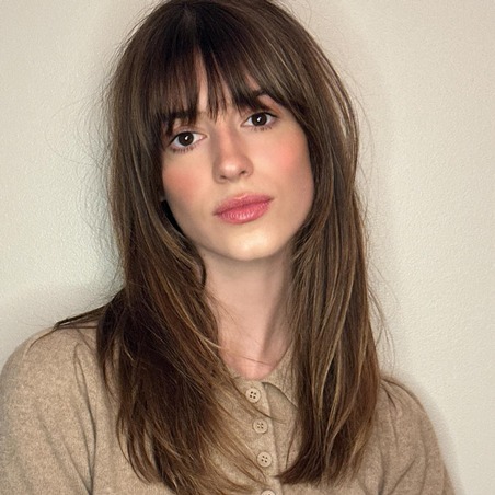لهذه الإطلالة، ستحتاجين فقط إلى خصلة صغيرة من الشعر مقصوصة عند عظام وجنتيك بدلًا من طبقة كاملة حولها، فهي تُضفي نفس التأثير اللافت للنظر، لكنها تبدو أكثر راحةً وعملية للظهور اليومي.