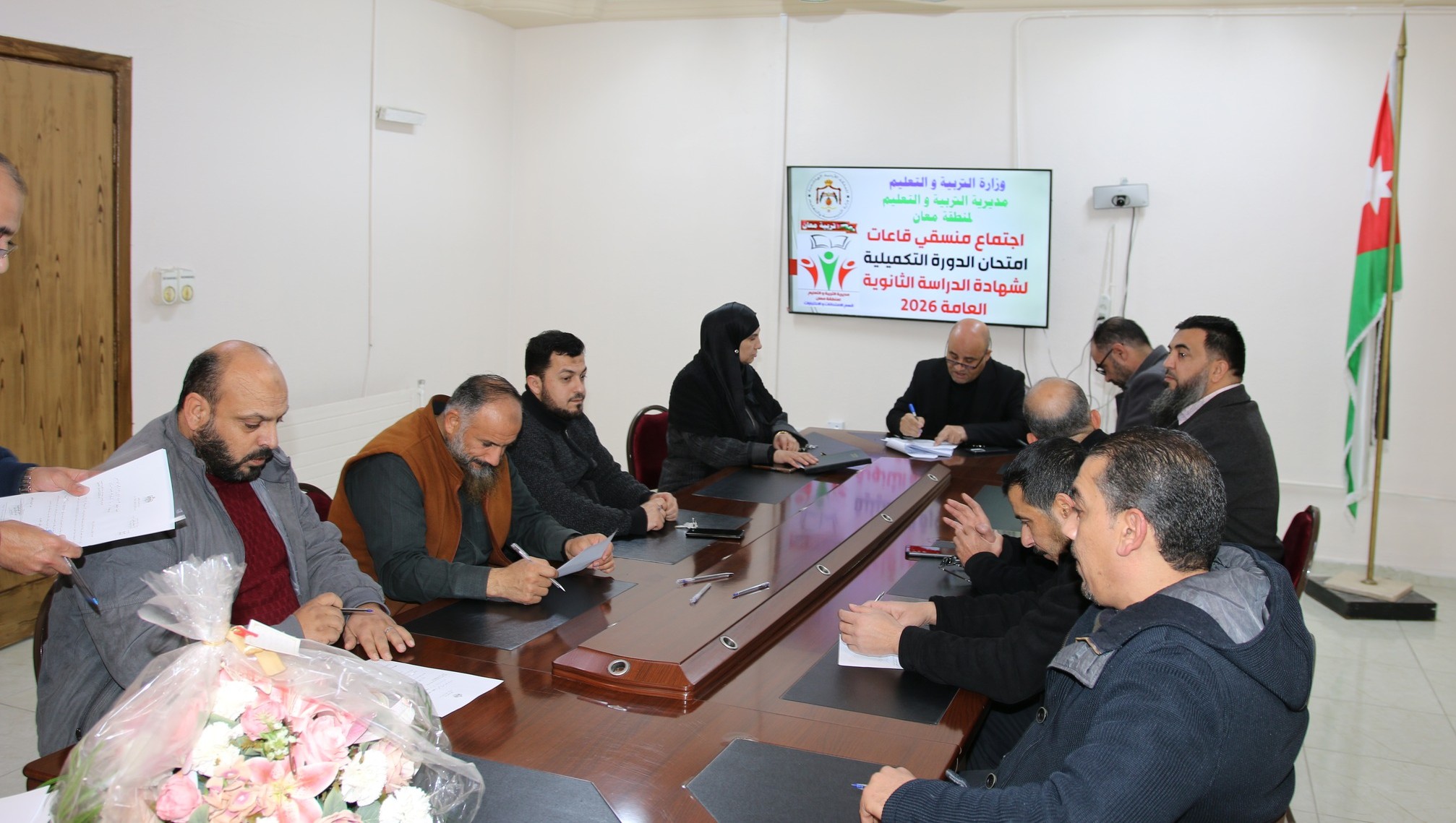 رم - ترأس مدير التربية والتعليم لمنطقة معان الدكتور عدنان الحباشنة اجتماعا لمنسقي ومندوبي المديرية في قاعات الثانوية العامة للدورة التكميلية، في قاعة المديرية بحضور مدير الشؤون التعليمية السيدة وئام باقر، ومدير الشؤون الإدارية والمالية الأستاذ موسى أبو شتال، وعدد من رؤساء الأقسام ذات العلاقة.