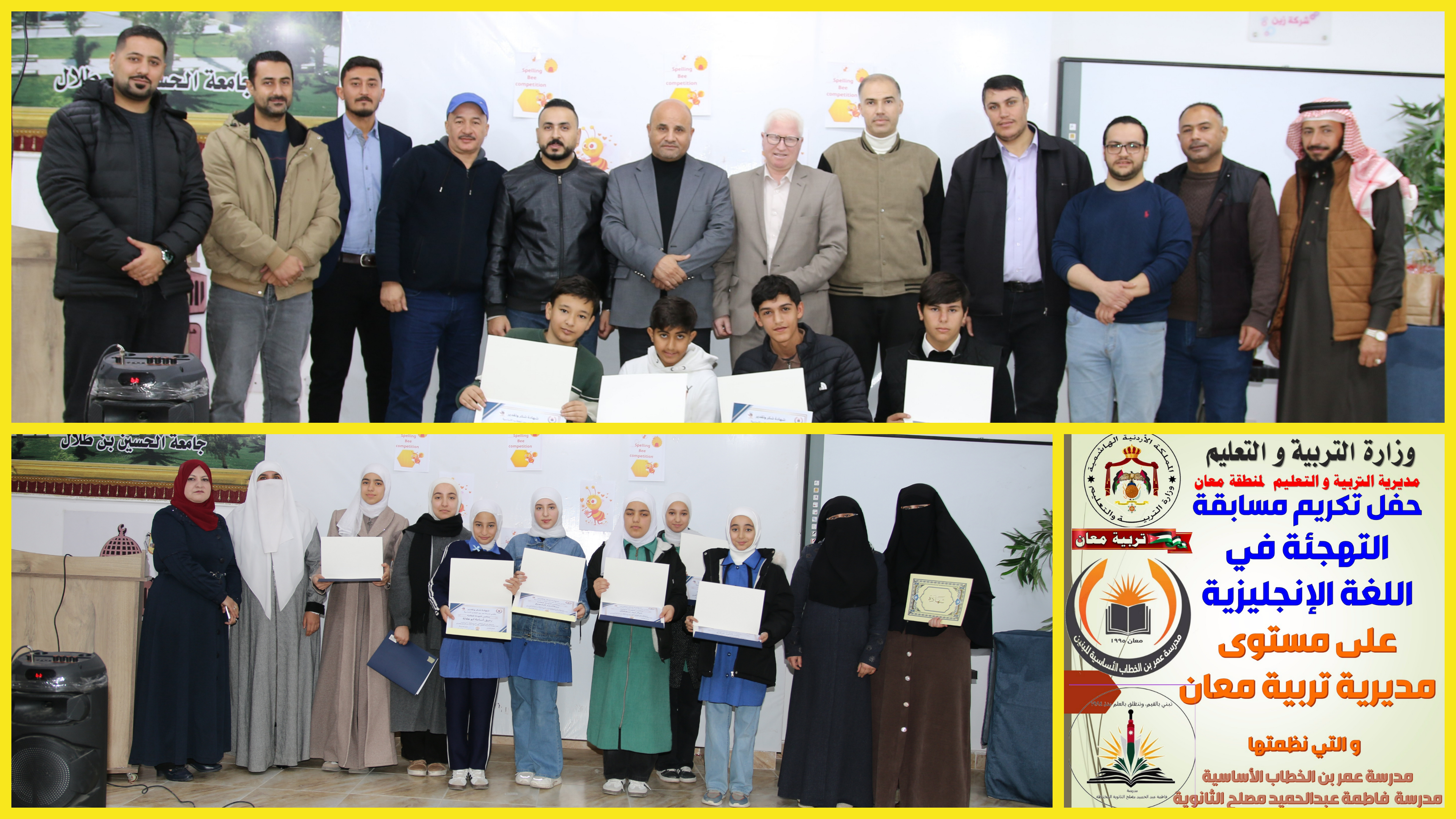 رم - كرم مدير التربية والتعليم لمنطقة معان الدكتور عدنان الحباشنة الطلبة الفائزين بمسابقة التهجئة باللغة الإنجليزية Spelling Bee، التي نظّمتها مدرسة عمر بن الخطاب الأساسية للبنين للذكور بفكرة مميزة من المعلم وجدي الحسنات، وبالتعاون مع مدرسة فاطمة عبدالحميد مصلح الثانوية-الإسكان سابقا التي استضافت فعاليات النسخة الخاصة بالإناث، و جرى التكريم على مسرحها.