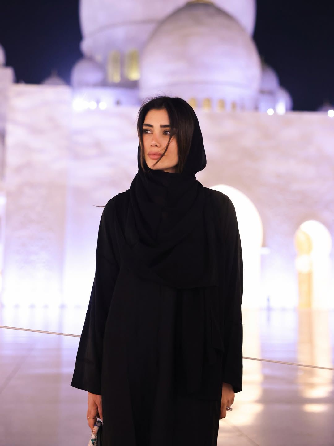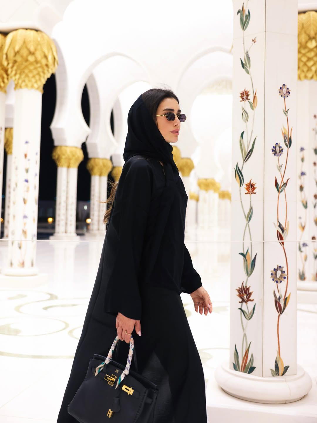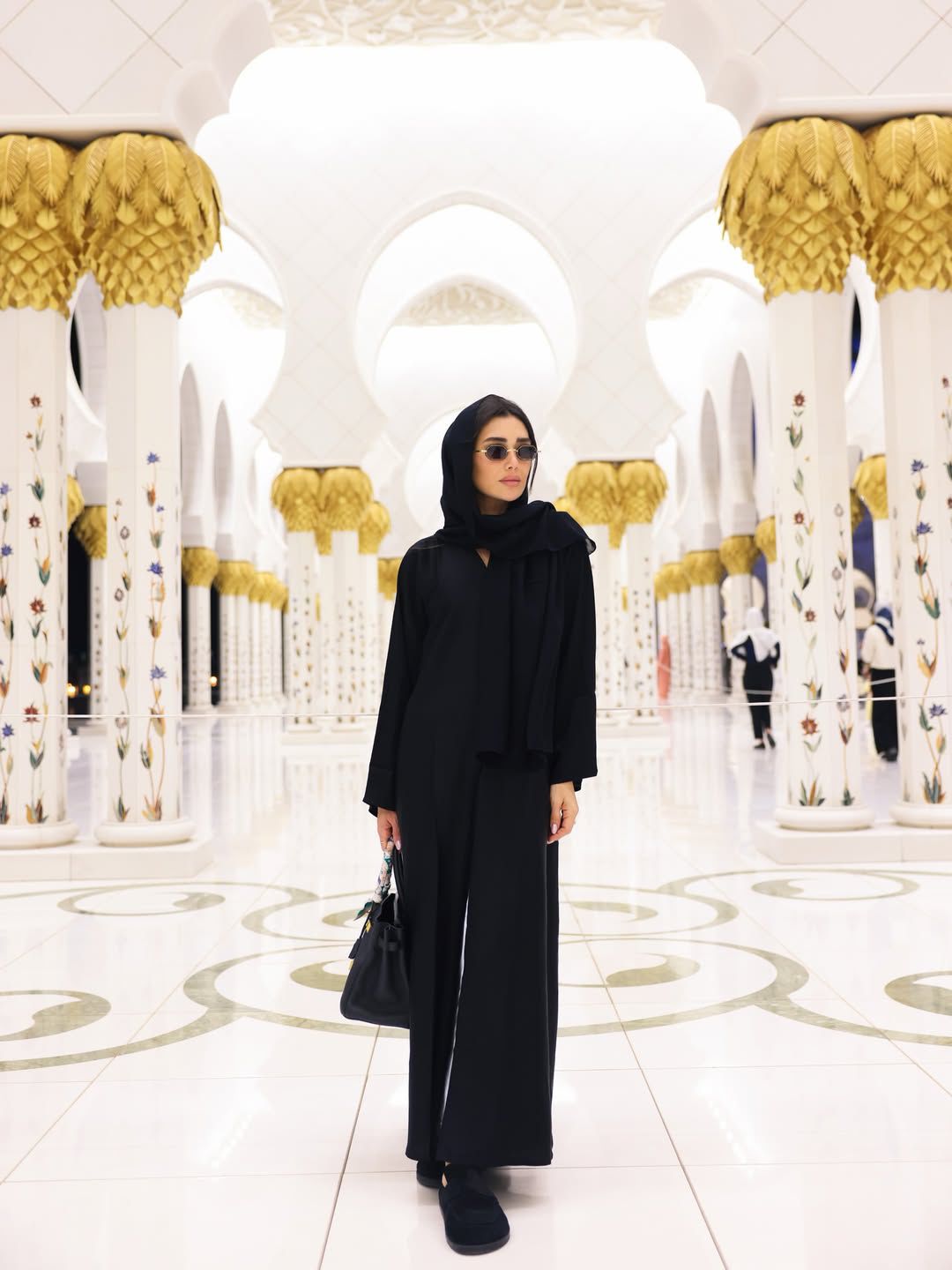 العباءة والشال يرافقان إطلالة جيسيكا عازار في جامع الشيخ زايد