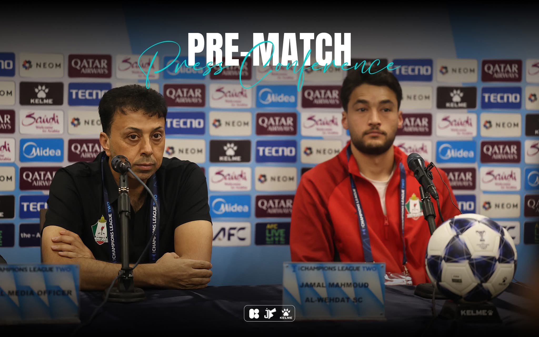 رم - عقد نادي الوحدات مؤتمره الصحفي الذي يسبق المواجهة المرتقبة أمام الوصل، ضمن منافسات دوري أبطال آسيا 2، بحضور المدير الفني محمود جمال وحارس الفريق عبدالله الفاخوري.