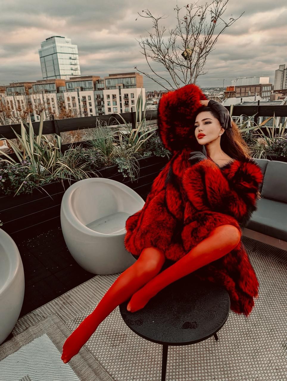 مي حريري تحتفل بالعيد بصيحة الفرو الأحمر