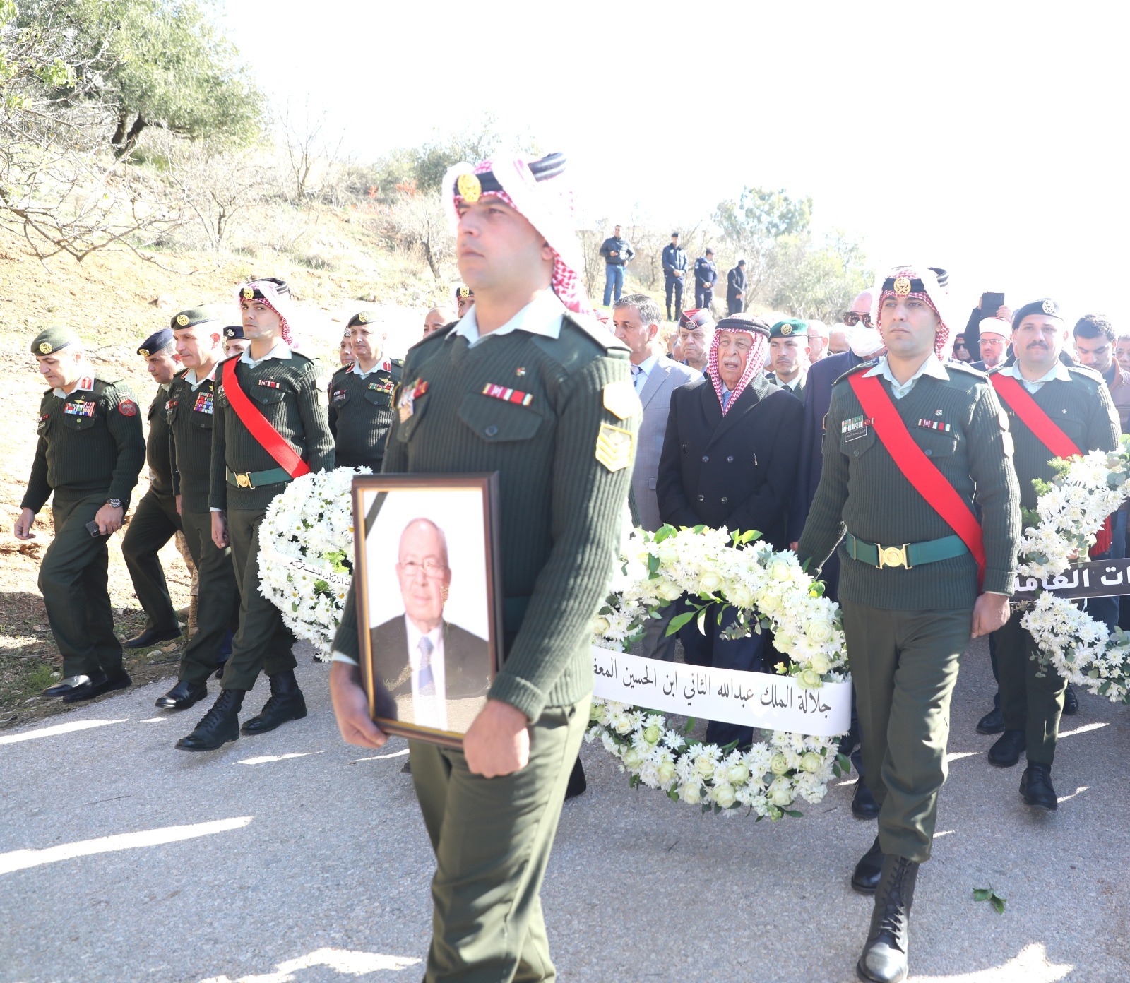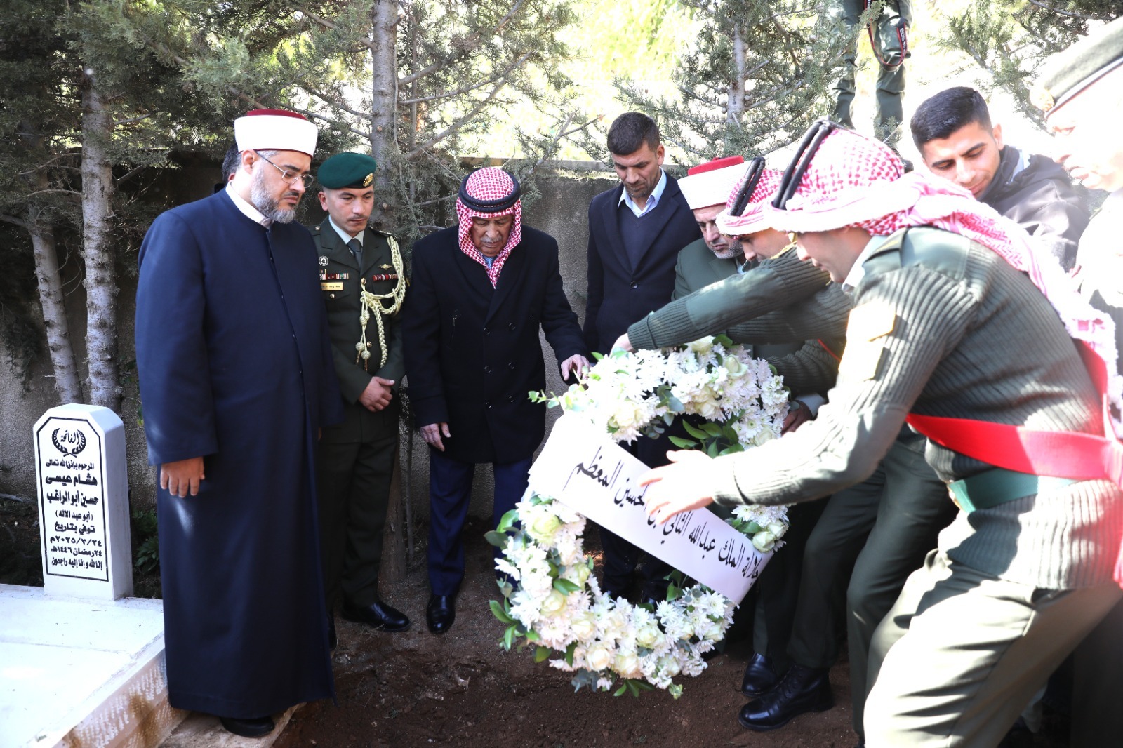 ونقل العيسوي، خلال مشاركته في مراسم التشييع، تعازي ومواساة جلالة الملك وسمو ولي العهد إلى ذوي الفقيد، وإلى عموم عشيرة أبو الراغب، سائلًا المولى عز وجل أن يتغمده بواسع رحمته، وأن يلهم أهله وذويه ومحبيه جميل الصبر وحسن العزاء.