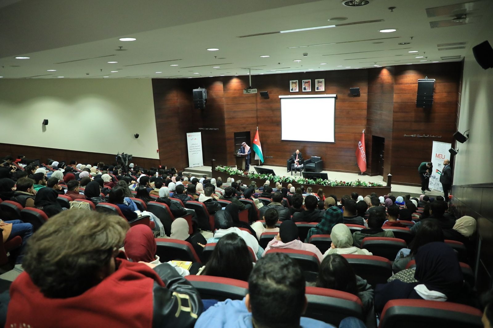 رم - نظّمت جامعة الشرق الأوسط جلسة حوارية بعنوان: "العنف وأثره على البيئة الجامعية والعشائرية"، قدّمها معالي مستشار جلالة الملك لشؤون العشائر، الباشا كنيعان البلوي، بحضور رئيس مجلس أمناء الجامعة الدكتور يعقوب ناصر الدين، ورئيسة الجامعة الأستاذة الدكتورة سلام المحادين،