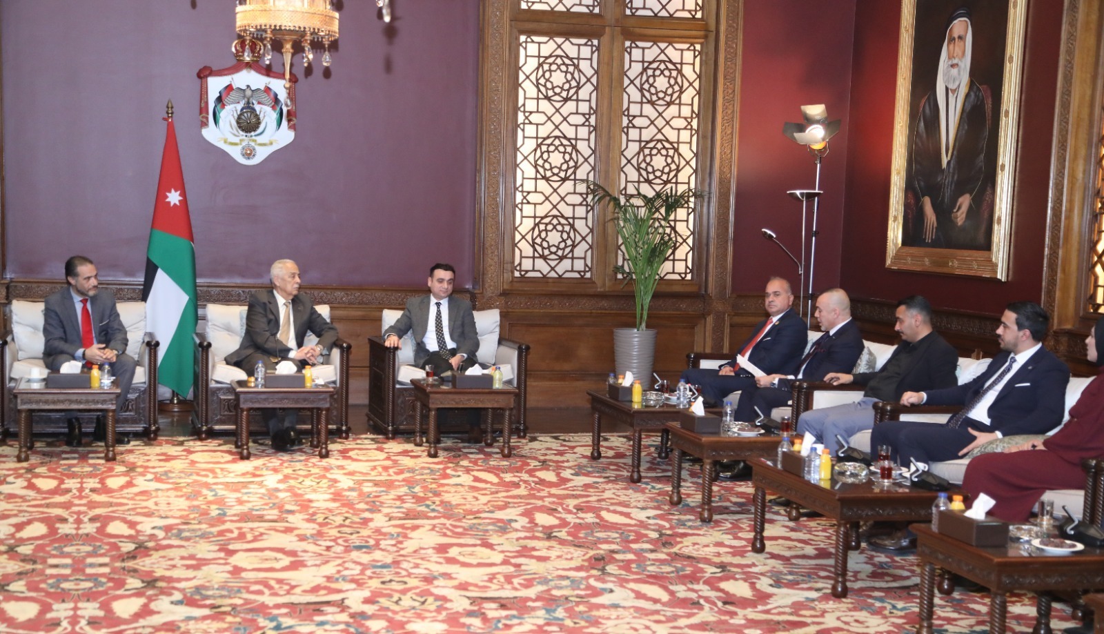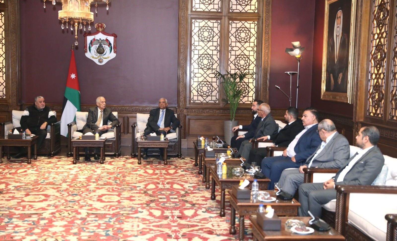 عقد رئيس الديوان الملكي الهاشمي يوسف حسن العيسوي، اليوم الخميس، لقاءين منفصلين في الديوان الملكي الهاشمي، جمعاه مع وفدين، ضم الأول وفدًا من نادي القادسية، فيما ضم الثاني وفدًا من فريق "كلنا خلف القائد".