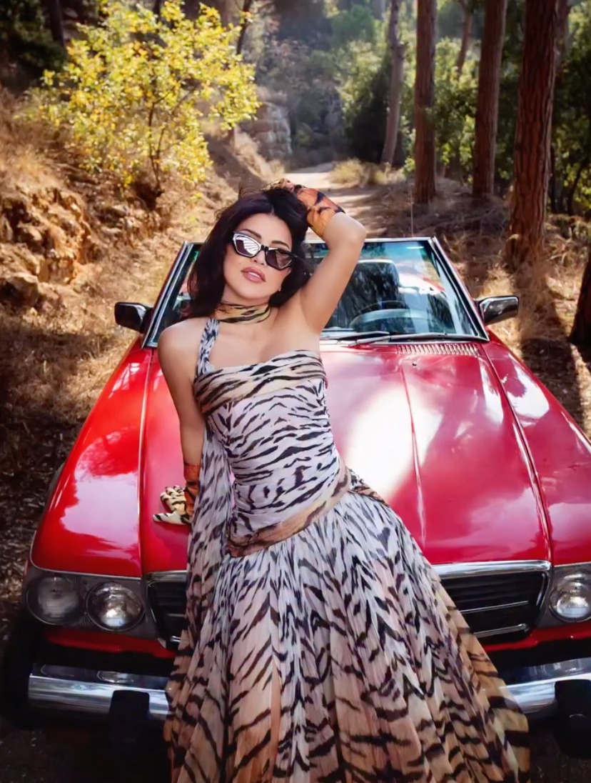 جومانا مراد بستايل جامح بفستان بطبعة النمر