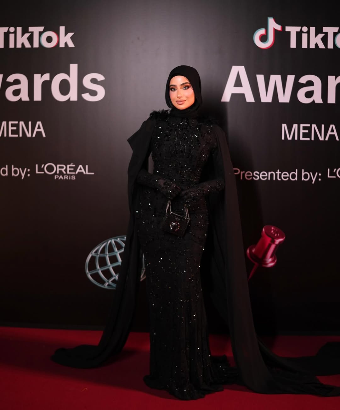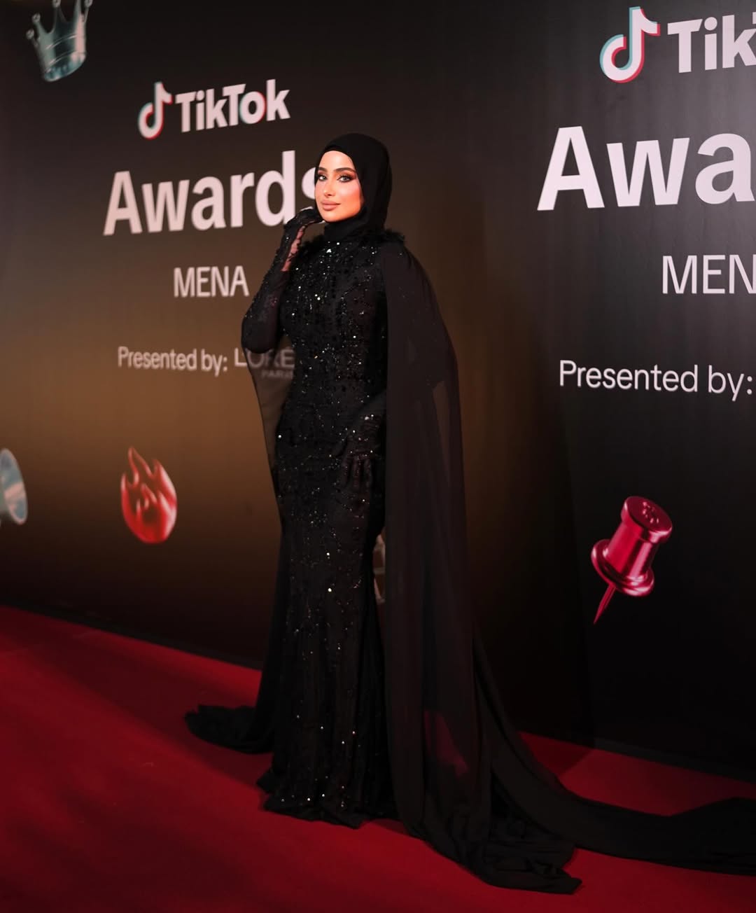 رم - حضرت البلوغر رغد حفل توزيع جوائز تيك توك بـ لوك كامل باللون الأسود، منحها مظهرًا دراماتيكيا.