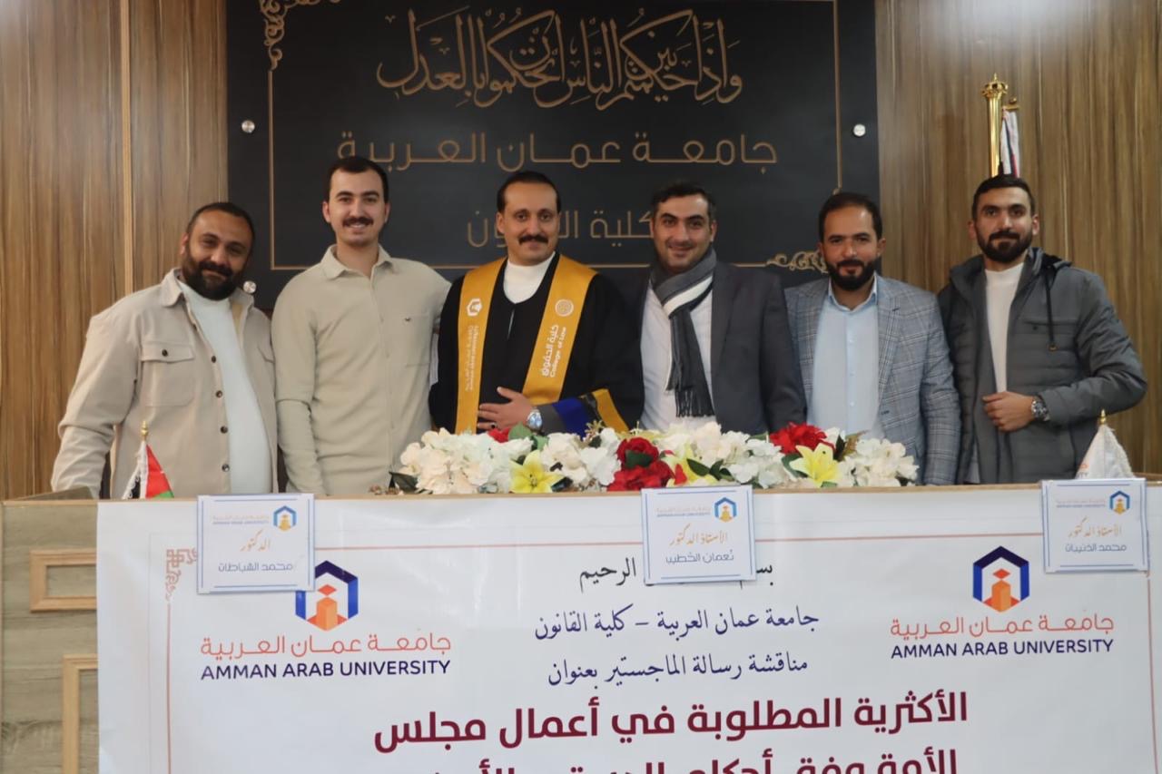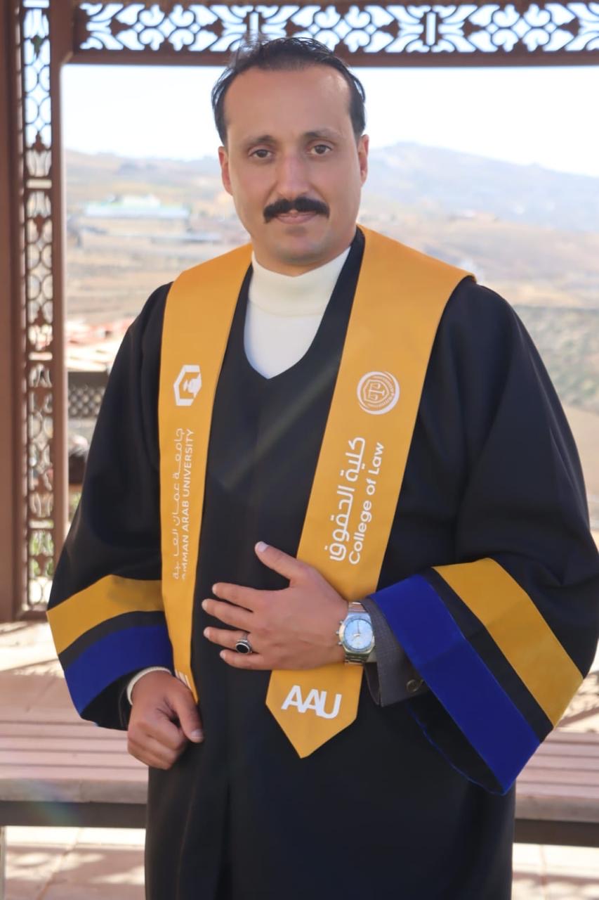 بمناسبة إتمام متطلبات الحصول على درجة الماجستير في القانون العام بتقدير امتياز، عن رسالته الموسومة بـ