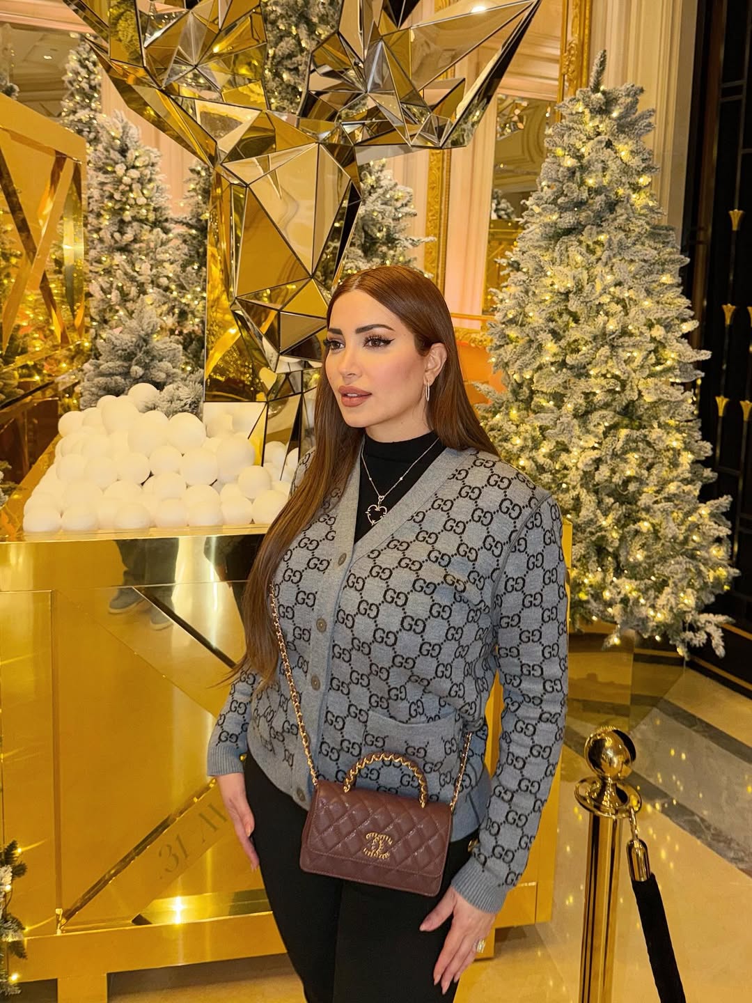 حيث اعتمدت نسرين إطلالة شتوية كاجوال مكونة من كارديغان باللون الرمادي من غوتشي نسقته مع بنطلون وتوب باللون الأسود وأضافت حقيبة وحذاء بساق عالية من شانيل