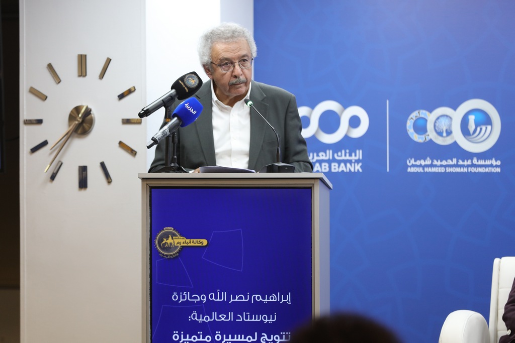 رم - عمان 13 كانون الثاني- احتفت مؤسسة عبد الحميد شومان، مساء أمس، بالشاعر والروائي إبراهيم نصر الله، بفوزه بجائزة "نيوستاد" الدولية للأدب، بحضور نخبة من الأدباء والأكاديميين والمدعوين.
