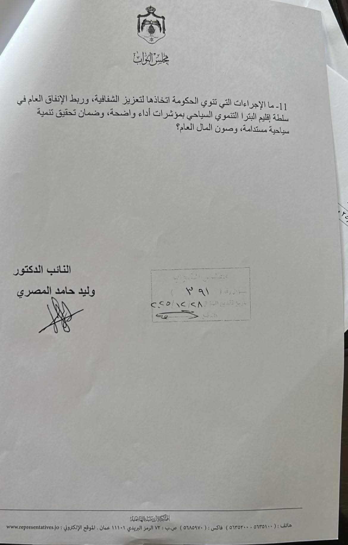 رم - فتح النائب وليد المصري ملف سلطة إقليم البترا على مصراعيه من خلال توجيهه عدة اسئلة نيابية غير اعتيادية دخلت بتفاصيل هامة في عمل السلطة ، جاء على رأسها مجموع النفقات والمصاريف التي تمت على الفعاليات والمهرجانات منذ العام ٢٠٢٤