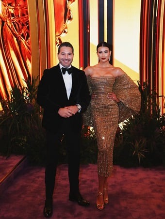 بفستان شفاف مطرّز بالكريستال من إيلي صعب، أعادت هاندا أرتشيل إلى الأذهان أناقة أميرات القصور. الكاب الشفاف والبودي سوت الجريء توازنا مع تسريحة كعكة منخفضة ومكياج انسيابي.