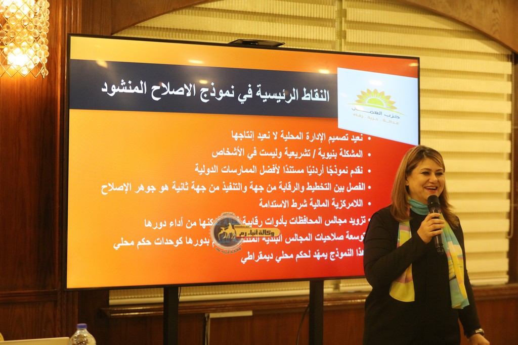 وقدمت الامين العام للحزب د. رلى الحروب عرضا للورقة يتضمن 11 محورا، مشددة على أن اللا مركزية هي مطلب ملكي منذ تشكيل لجنة الاجندة الوطنية عام 2005 وصولا الى لجنة التحديث السياسي عام 2022، وهي في الوقت ذاته رغبة شعبية لا يجوز الالتفاف عليها، أو تفريغ الديمقراطية من محتواها بحل المجالس المنتخبة وتأجيل الانتخابات وما يشاع من تعديلات على القانون تقزم صلاحيات المجالس البلدية وتلغي الانتخابات في مجالس المحافظات.
