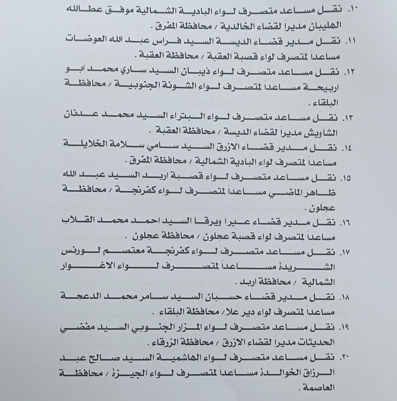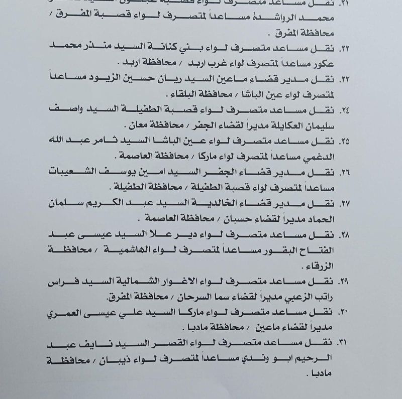 رم - أجرى وزير الداخلية مازن الفراية، اليوم الاربعاء، تشكيلات إدارية واسعة شملت متصرفين ومساعدي متصرفين ومدراء أقضية.