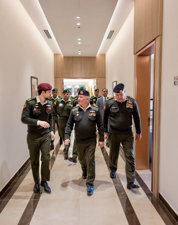 زار جلالة الملك عبدﷲ الثاني، القائد الأعلى للقوات المسلحة، الاثنين، القيادة العامة للقوات المسلحة الأردنية – الجيش العربي، يرافقه سمو الأمير الحسين بن عبدﷲ الثاني ولي العهد.