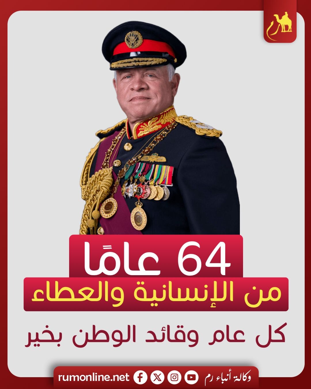 وقال حسان، في منشور على منصة "إكس" اليوم : " كل عام وجلالة سيدنا المفدّى بكل خير، والأردن بقيادته الحكيمة وجهوده الكبيرة عامرٌ بعزّ وكرامة وازدهار.معكم مولاي أبا الحسين، وسيد القلوب، نمضي بثقة وعزم في مسيرة وطننا الأعز والأغلى".