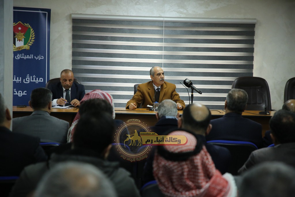 رم - عقد حزب الميثاق الوطني – فرع البلقاء، في غرفة تجارة السلط، محاضرة بعنوان “قراءة في مضامين خطاب جلالة الملك بشأن إعادة هيكلة القوات المسلحة الأردنية”، بحضور الأمين العام للحزب بالوكالة، وعدد من أعضاء المكتب السياسي والمجلس المركزي، إلى جانب أعضاء الهيئة الإدارية لفرع البلقاء والهيئة العامة.