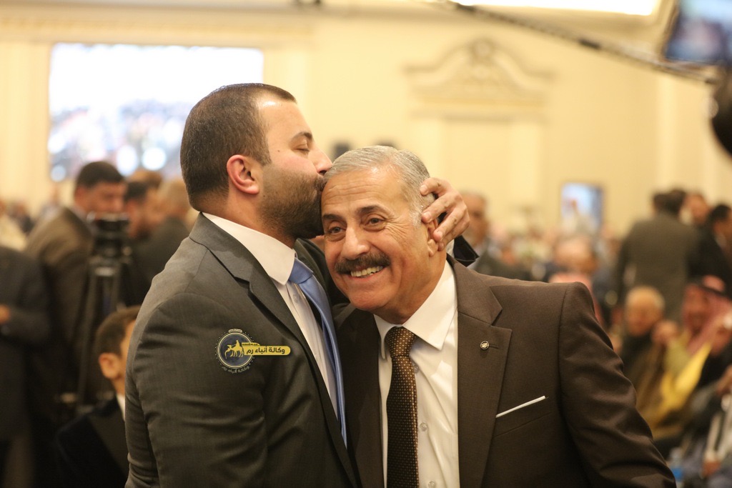 رم - توجّهت جاهة كريمة من آل العطيات، يتقدمها معالي محمود الخرابشة، إلى مضارب آل الصمادي، حيث كان في استقبالهم السيد عرب الصمادي وجمع من الوجهاء والأقارب، لطلب يد كريمة آل الصمادي الآنسة نيڤين منعم الصمادي للشاب عبد الرحمن خالد العطيات.