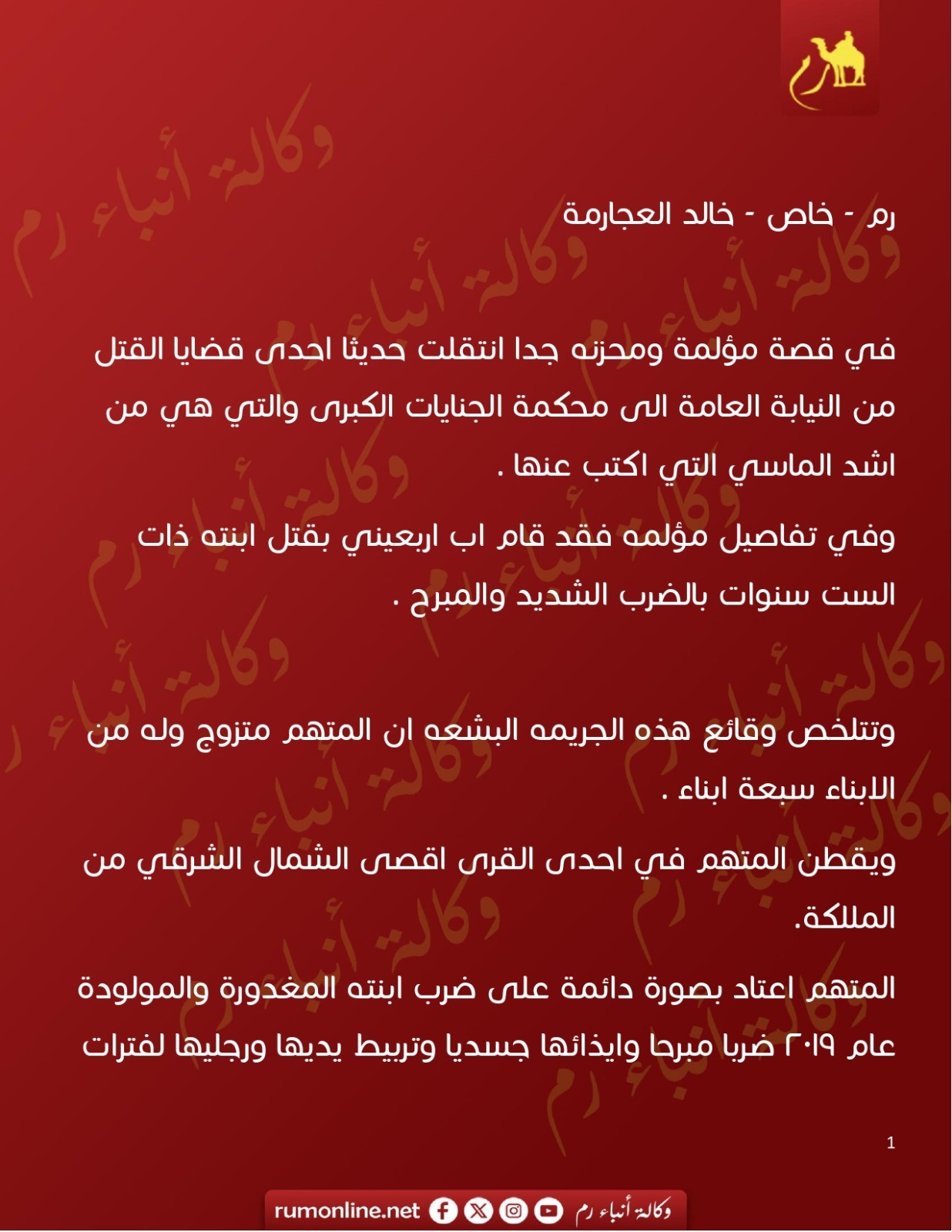 ابشع قضية قتل في المملكة "قتل طفلته لأجل حذاء" تفاصيل تنفرد بنشرها "رم"