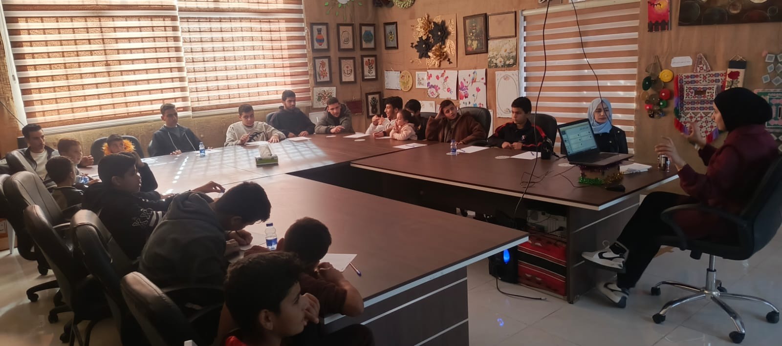 فقد نظم المركز أمس الأربعاء ورشة حوارية بعنوان "التواصل الفعّال"، بمشاركة 15 شاباً من الفئة العمرية (12–18) عاماً، قدمتها المتطوعة رغد الدومي، حيث تناولت مفهوم التواصل الفعّال وأهميته في الحياة اليومية، وآليات تطبيقه بالشكل الصحيح، إضافة إلى توضيح الهيكل التنظيمي للإدارة ومفهوم التسلسل الإداري وأثره في تعزيز بيئة قائمة على الوضوح والاحترام. كما تطرقت إلى دور مواقع التواصل الاجتماعي في تنمية مهارات الاتصال، وكيفية توظيفها بصورة إيجابية وفاعلة.