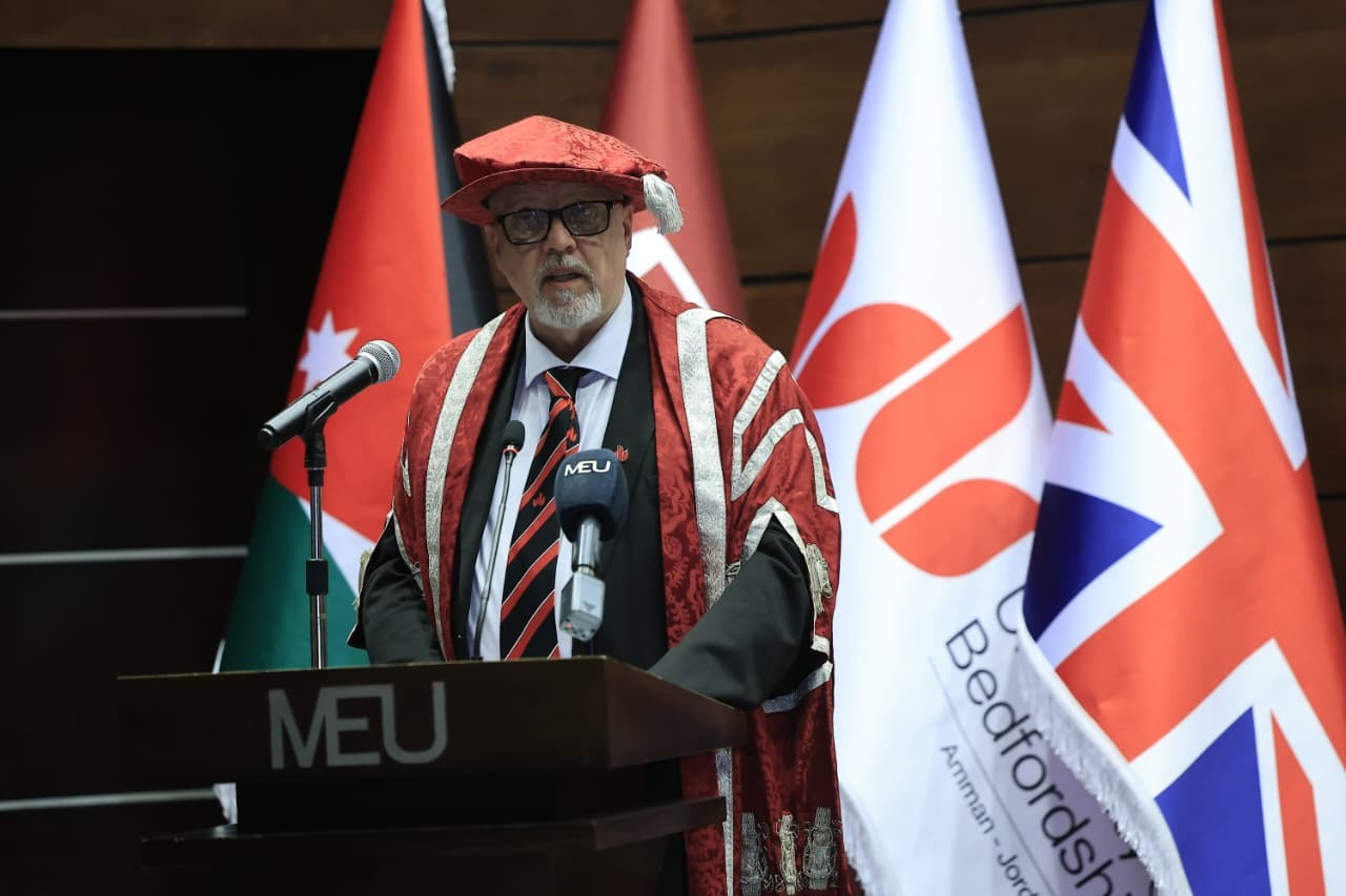 وفي كلمته، قال نائب رئيس جامعة بيدفوردشير الأستاذ الدكتور أدريان داتش إن هذا اليوم يُمثّل محطة للتأمل في حجم الجهد المبذول، والانطلاق نحو مستقبل يتسم بالتغير المتسارع، مشيرًا إلى أن الشراكة مع جامعة الشرق الأوسط شكّلت نموذجًا رائدًا في المنطقة، إذ كانت أول جامعة في الأردن تقدّم شهادات بريطانية معتمدة، وأسهمت في تخريج مئات الطلبة، ما جعل جامعة بيدفوردشير تمتلك واحدة من أكبر قواعد خريجيها في المملكة.