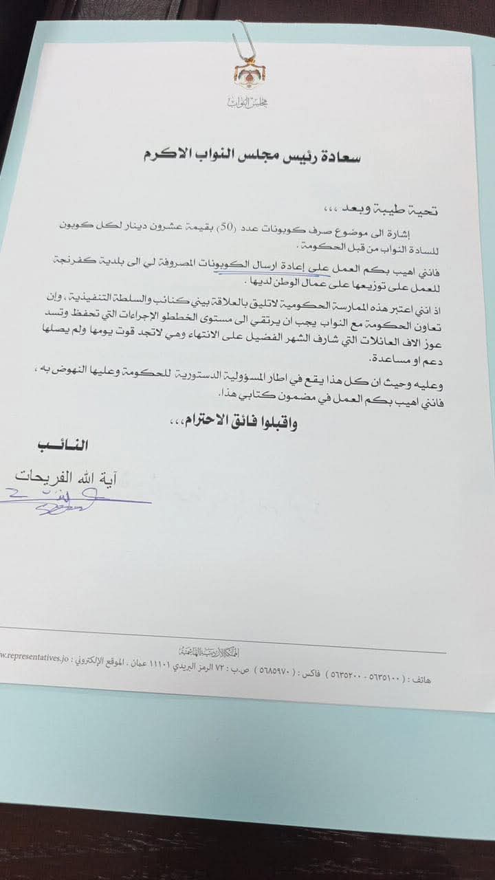 رم - قال النائب آية الله الفريحات إن إسناد توزيع كوبونات شهر رمضان إلى النواب ليس إجراءً إداريًا عابرًا، بل انحرافٌ عن مقتضى الدولة المؤسسية ومساسٌ بجوهر الوظيفة الدستورية فهو ينقل الحق الاجتماعي من إطاره الطبيعي بوصفه التزامًا عامًا تتولاه مؤسسات التنفيذ وفق معايير الاستحقاق والعدالة، إلى دائرة الوساطة التي تُربك نقاء الدور الرقابي وتُضعف وضوح الفصل بين السلطات.