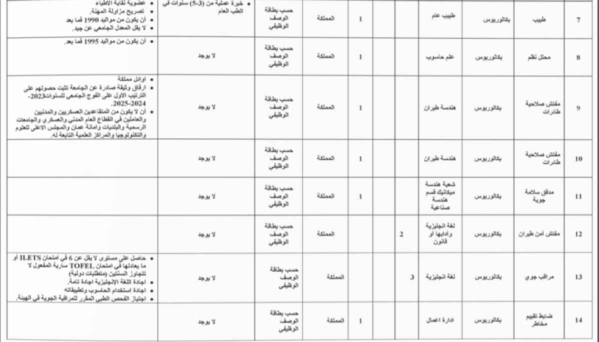 ودعت الراغبين بالتقدم إلى الاطلاع على التفاصيل الخاصة بكل وظيفة، والتأكد من استيفاء الشروط المطلوبة قبل تقديم الطلبات، ضمن المدد الزمنية والإجراءات المعتمدة.
