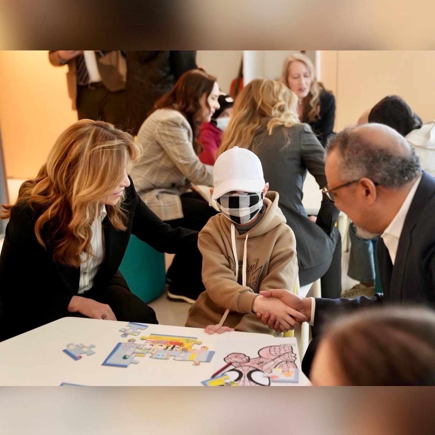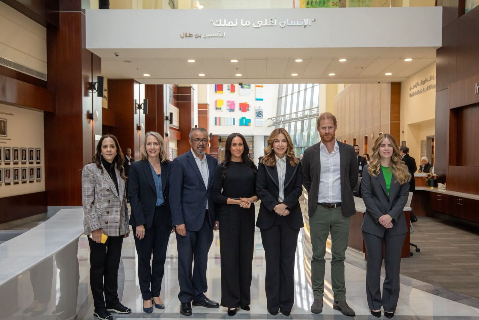 رم - عمّان، شباط 2026: استقبلت سموّ الأميرة غيداء طلال، رئيسة هيئة أمناء مؤسسة ومركز الحسين للسرطان، وفدا من منظّمة الصحة العالميّة بقيادة الدكتور تيدروس أدحانوم غيبرييسوس، مدير عام المنظّمة، يرافقه الأمير هاري وزوجته ميغان دوق ودوقة ساسكس، ضمن زيارتهم إلى الأردن.