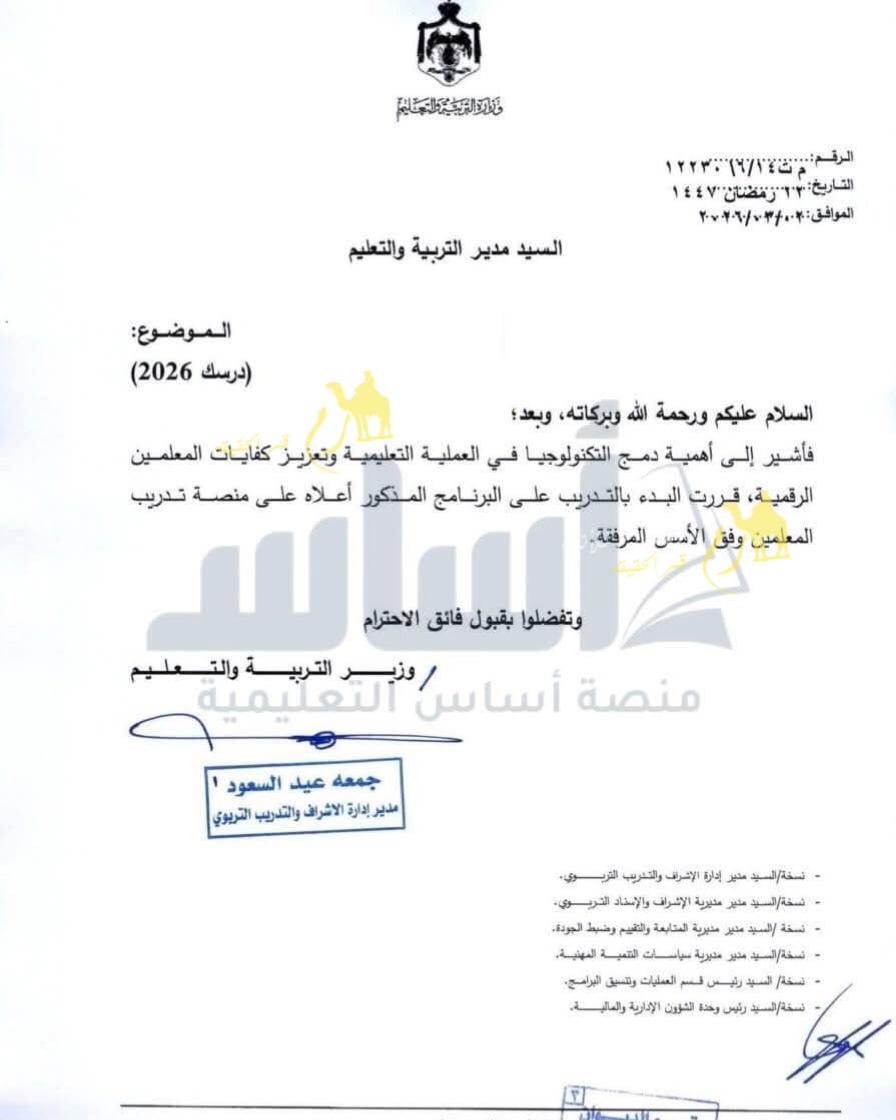 التربية تطلق منصة "درسك" لتأهيل المعلمين للتدريس عن بعد - وثيقة