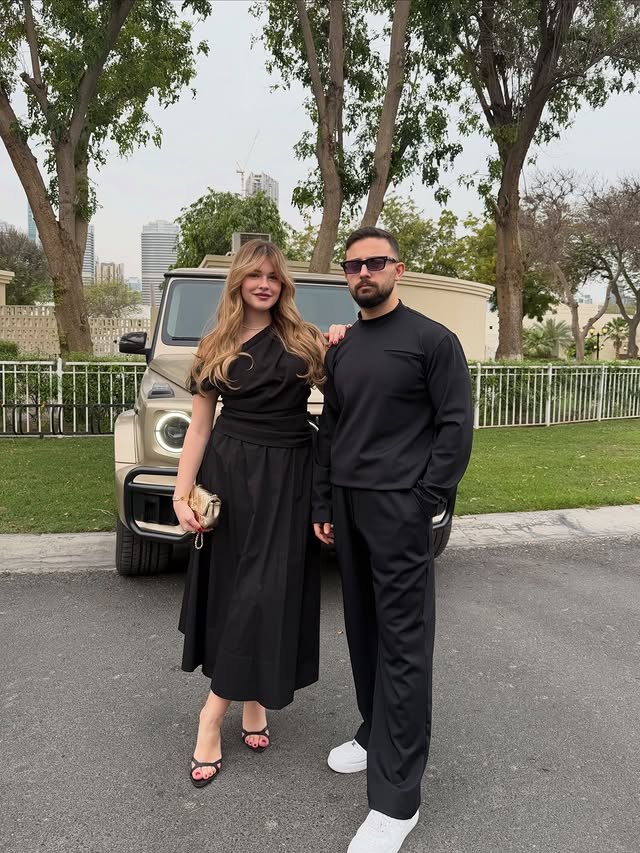 رم - احتفلت مشهورة السوشال ميديا #أليونا وزوجها #يزن_عبويني، بعيد الفطر المبارك، بإطلالات متناسقة باللون الأسود الأنيق، وخلفهما سيارتهما الفارهة، بلونها الذهبي اللافت.